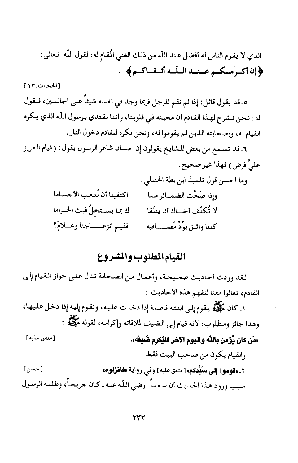 6 - قد تسمع من بعض المشايخ يقولون إِن حسان شاعر الرسول يقول: (قيام العزيز عليَّ فرض) فهذا غير صحيح.