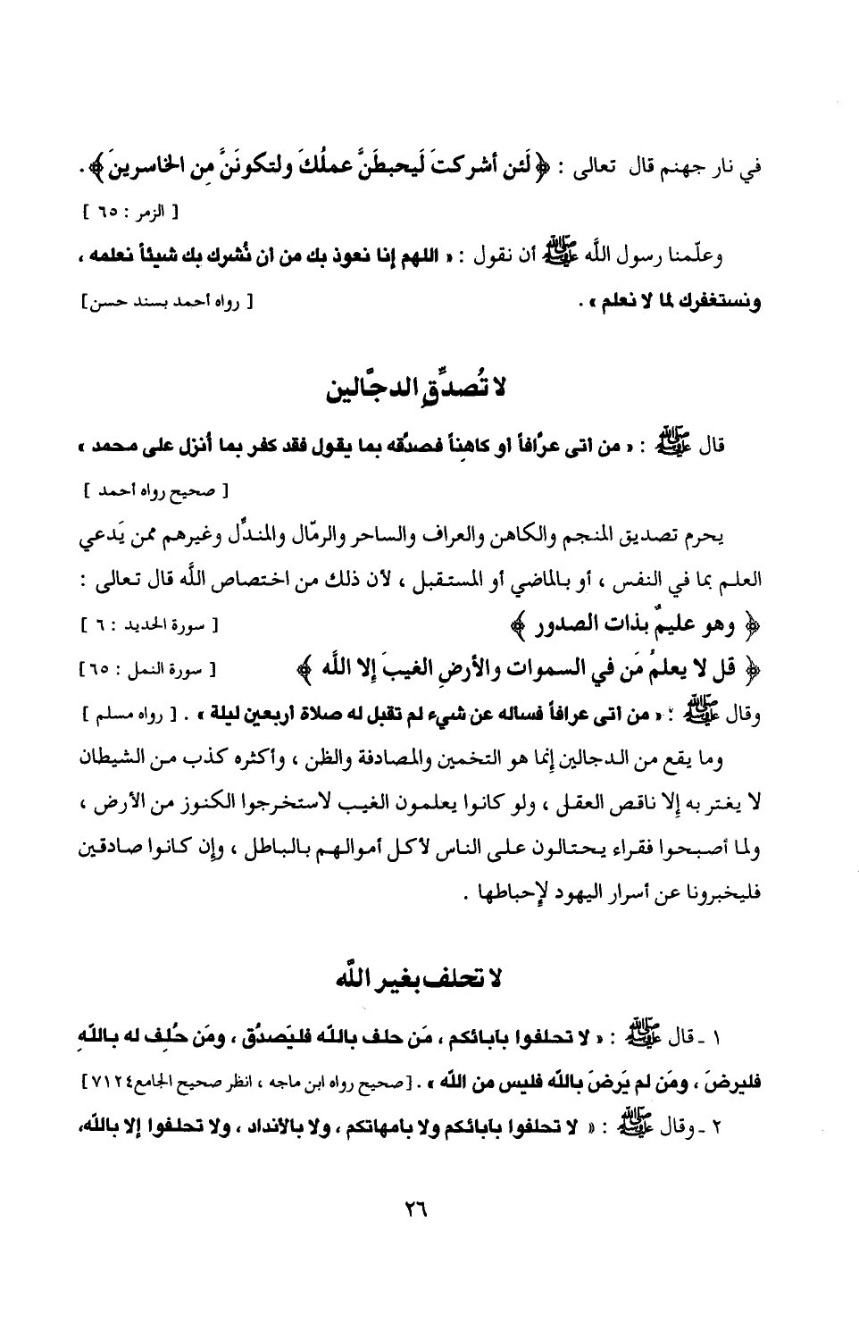 قال - صلى الله عليه وسلم -: "من أتى عرافًا أو كاهنًا فصدقه بما يقول فقد كفر بما أنزل على محمد" [صحيح رواه أحمد]
