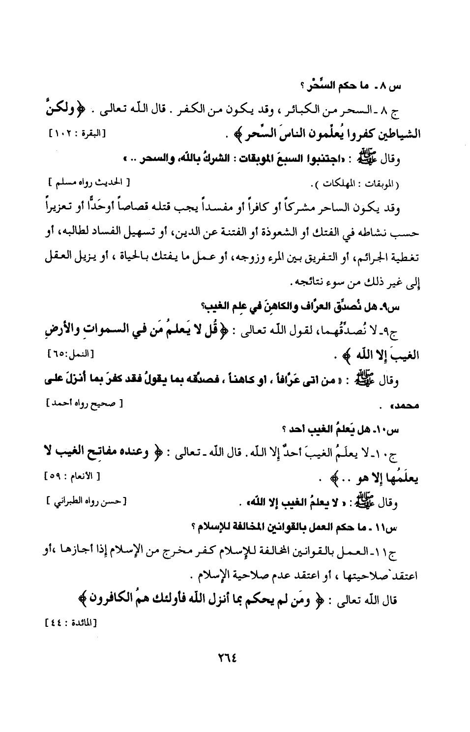 ج 8 - السحر من الكبائر، وقد يكون من الكفر. قال الله تعالى. {وَلَكِنَّ الشَّيَاطِينَ كَفَرُوا يُعَلِّمُونَ النَّاسَ السِّحْرَ}. [البقرة: 102]