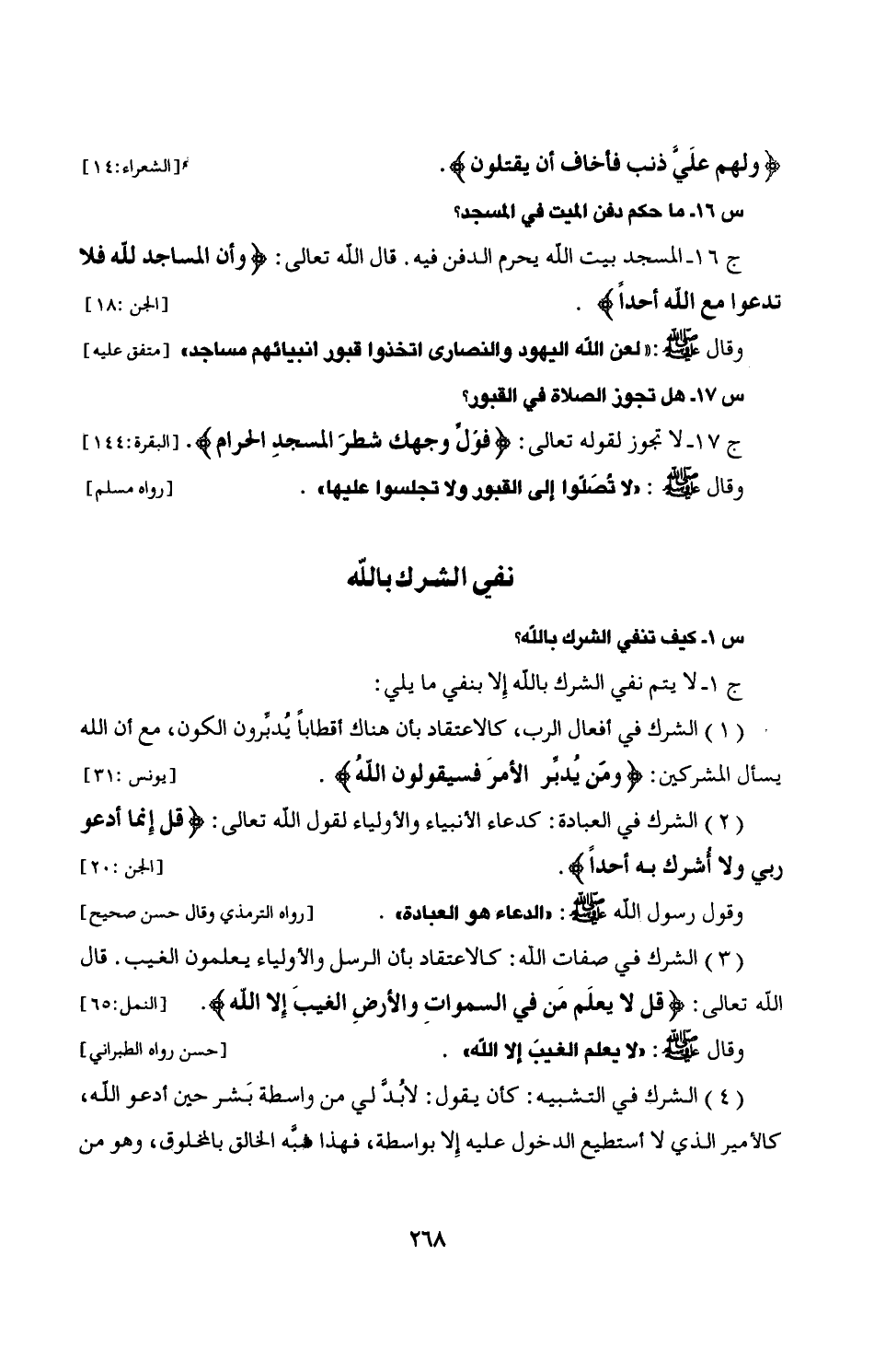 ج 16 - المسجد بيت الله يحرم الدفن فيه. قال الله تعالى: {وَأَنَّ الْمَسَاجِدَ لِلَّهِ فَلَا تَدْعُوا مَعَ اللَّهِ أَحَدًا}. [الجن: 18]
