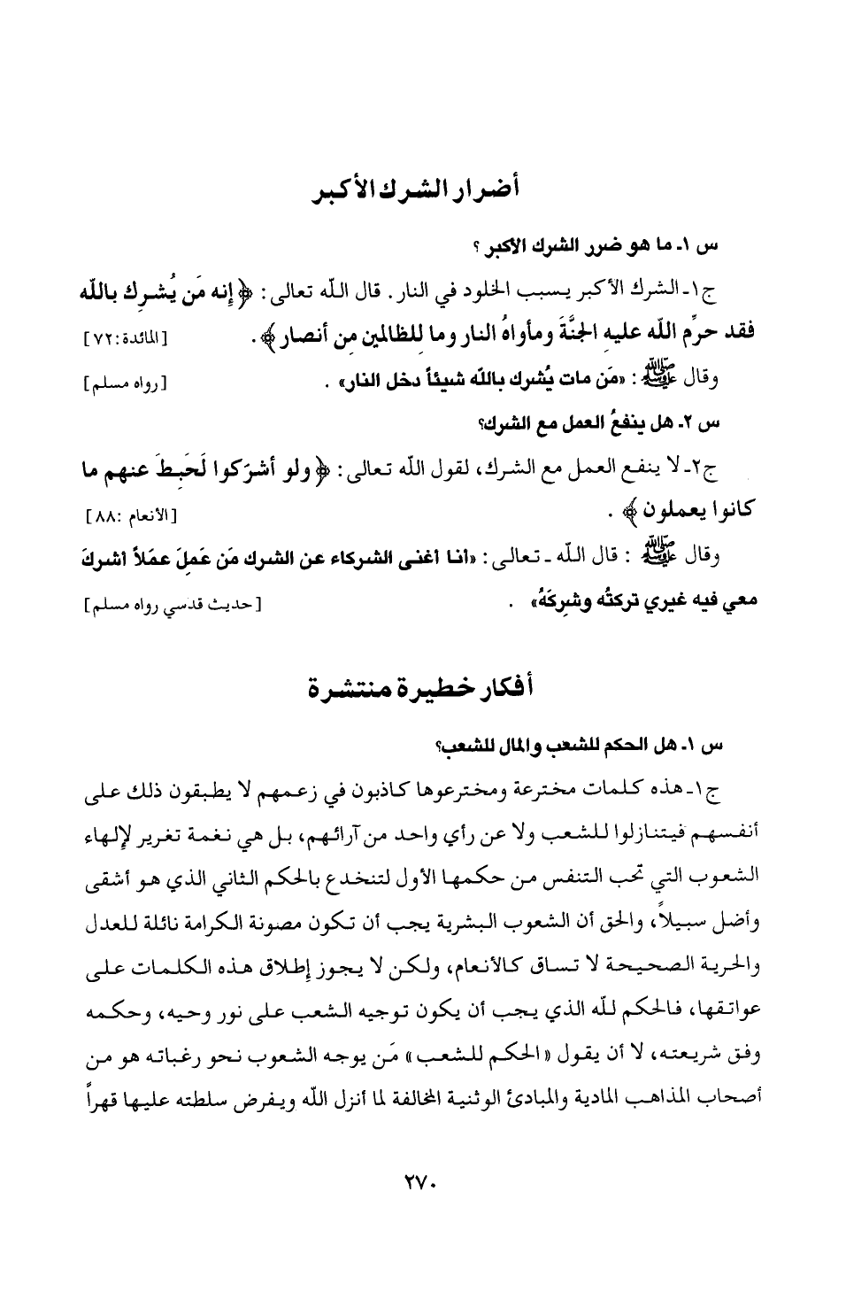 س 1 - ما هو ضرر الشرك الأكبر؟