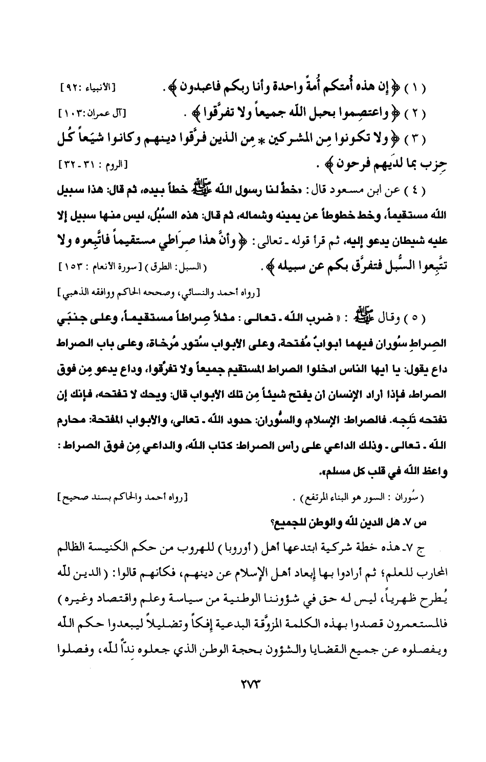 (1) {إِنَّ هَذِهِ أُمَّتُكُمْ أُمَّةً وَاحِدَةً وَأَنَا رَبُّكُمْ فَاعْبُدُونِ} [الأنبياء: 92]
