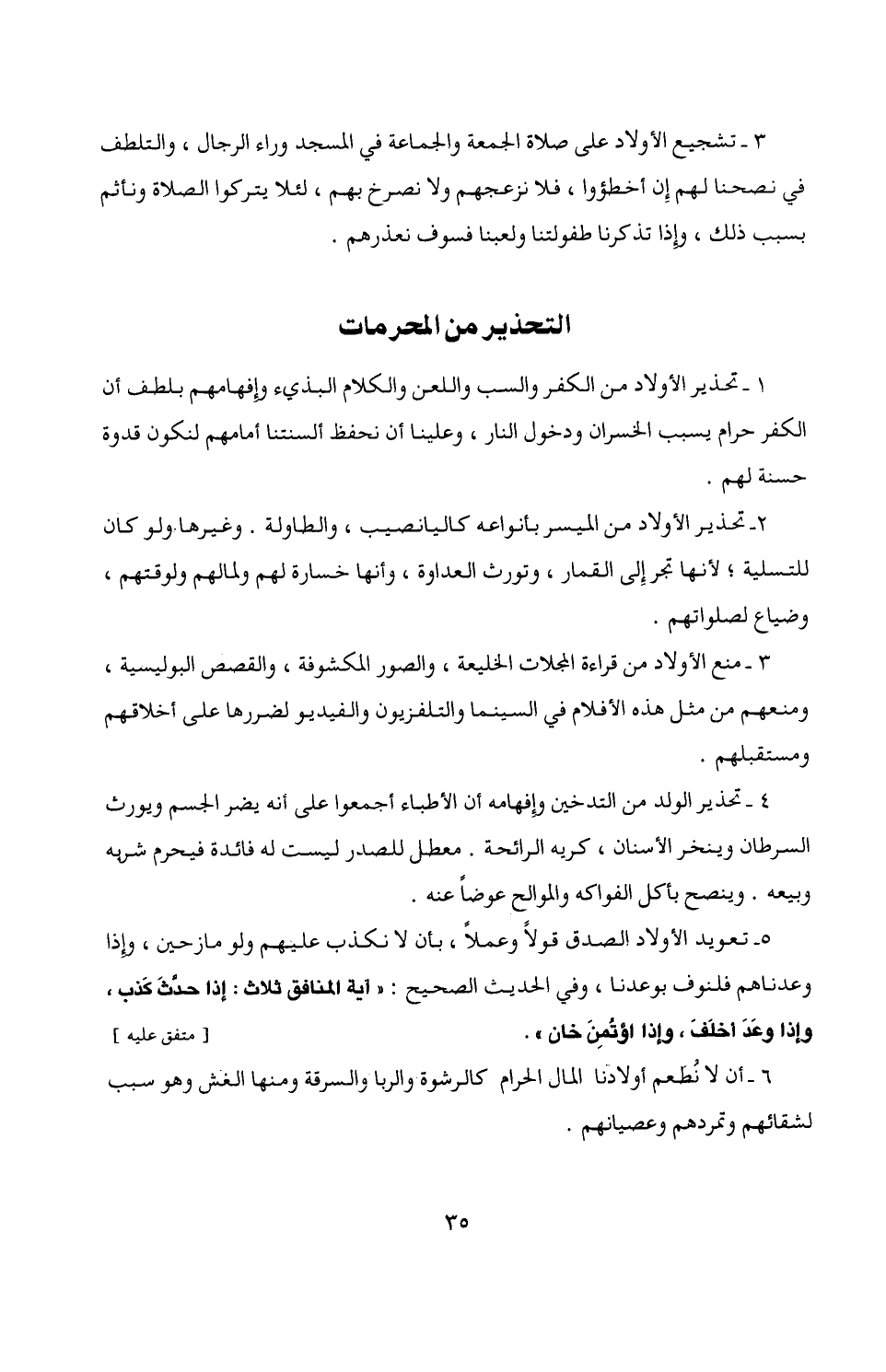 3 - منع الأولاد من قراءة المجلات الخليعة، والصور المكشوفة، والقصص البوليسية، ومنعهم من مثل هذه الأفلام في السينما والتلفزيون والفيديو لضررها على أخلاقهم ومستقبلهم.