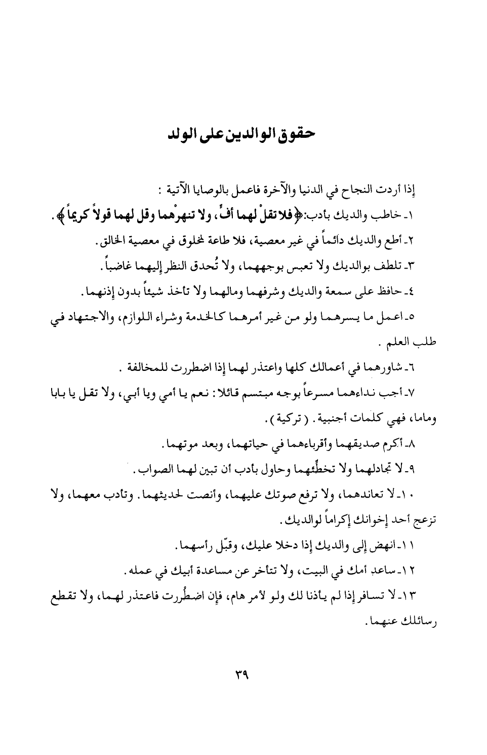 2 - أطع والديك دائمًا في غير معصية، فلا طاعة لخلوق في معصية الخالق.