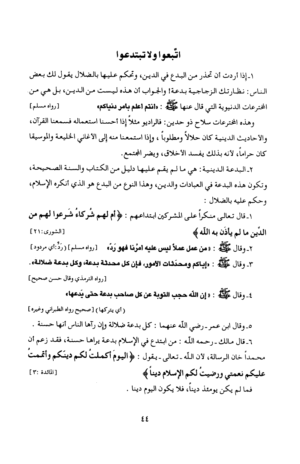 1 - قال تعالى منكرًا على المشركين ابتداعهم: {أَمْ لَهُمْ شُرَكَاءُ شَرَعُوا لَهُمْ مِنَ الدِّينِ مَا لَمْ يَأْذَنْ بِهِ اللَّهُ} [الشورى: 21]