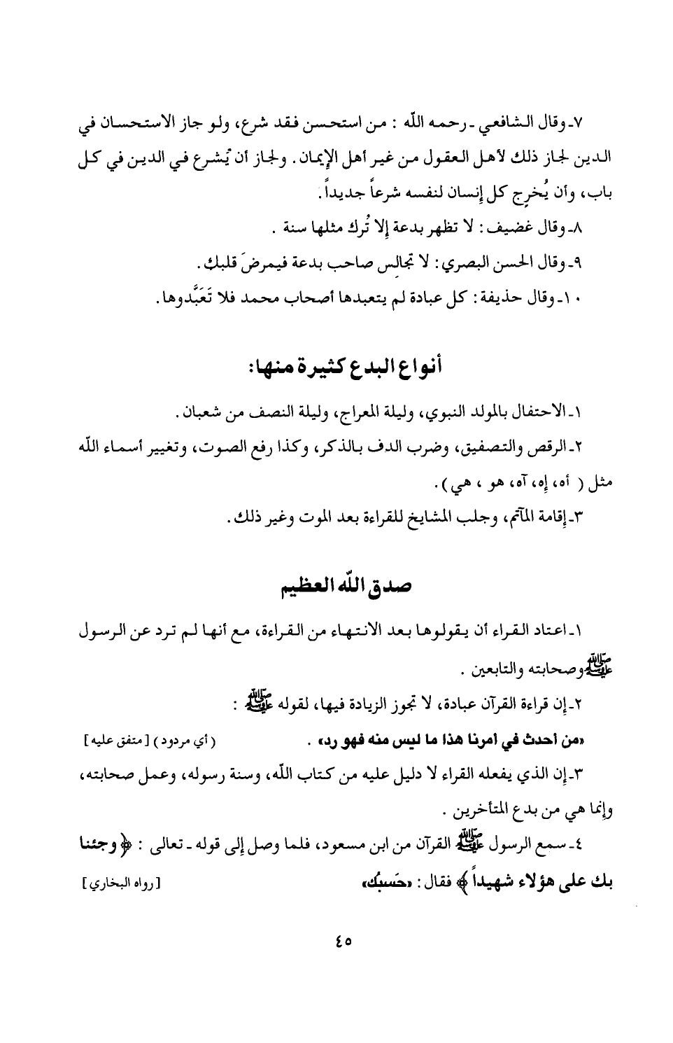 3 - إِن الذي يفعله القراء لا دليل عليه من كتاب الله، وسنة رسوله، وعمل صحابته، وإنما هي من بدع المتأخرين.