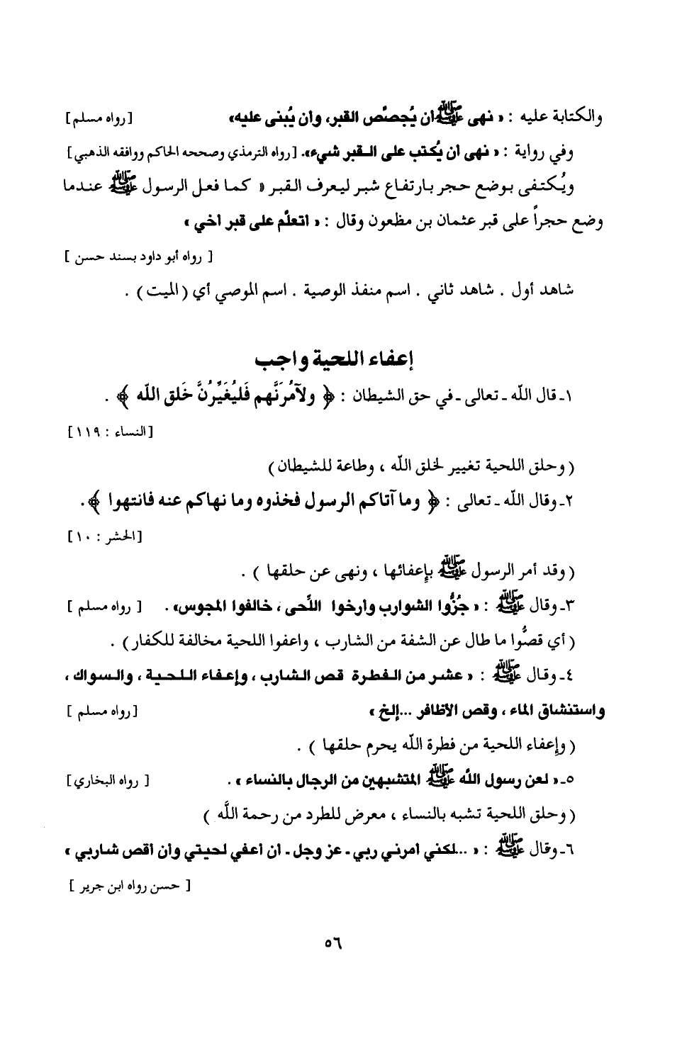 (وقد أمر الرسول - صلى الله عليه وسلم - بإِعفائها، ونهى عن حلقها).