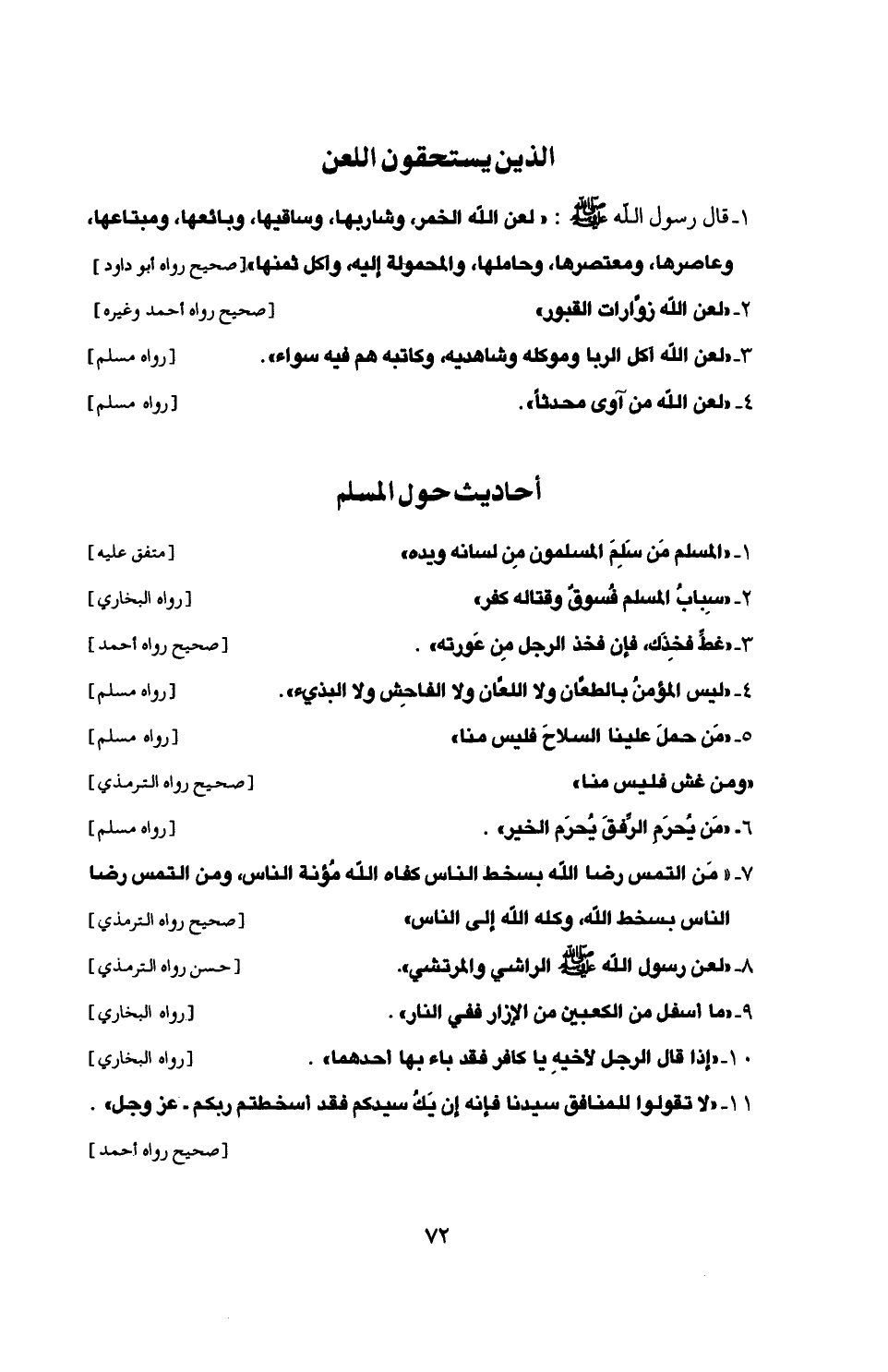 1 - قال رسول الله - صلى الله عليه وسلم -: "لعن الله الخمر، وشاربها، وساقيها، وبائعها، ومبتاعها، وعاصرها، ومعتصرها، وحاملها، والمحمولة إليه، وآكل ثمنها" [صحيح رواه أبو داود]