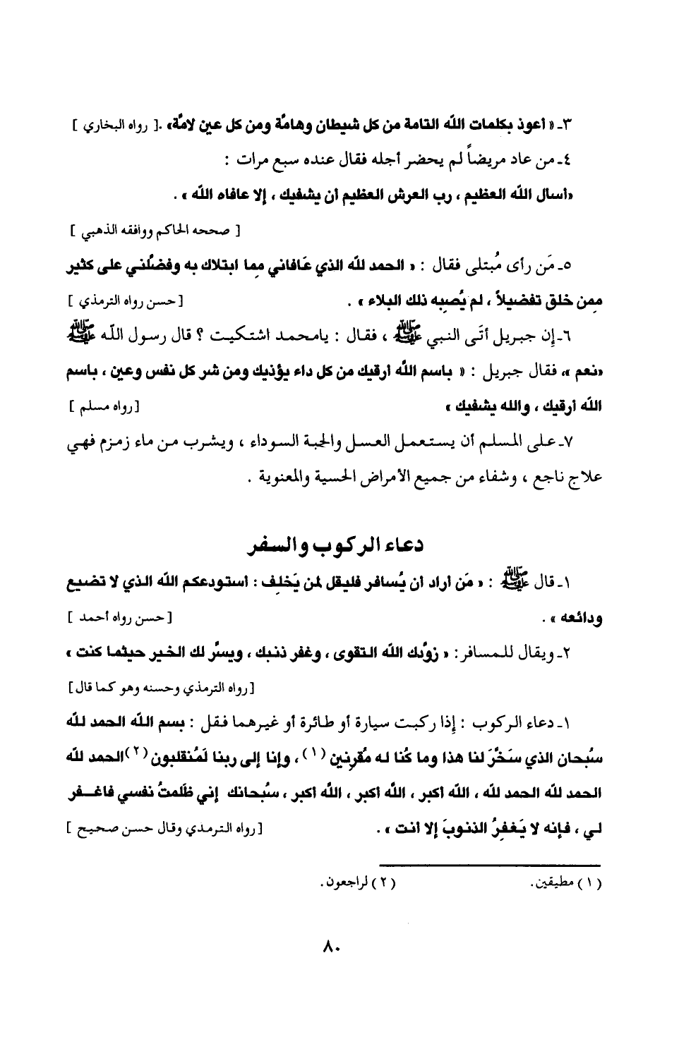 1 - قال - صلى الله عليه وسلم -: "من أراد أن يُسافر فليقل لمن يخلِف: أستودعكم الله الذي لا تضيع ودائعه". [حسن رواه أحمد]