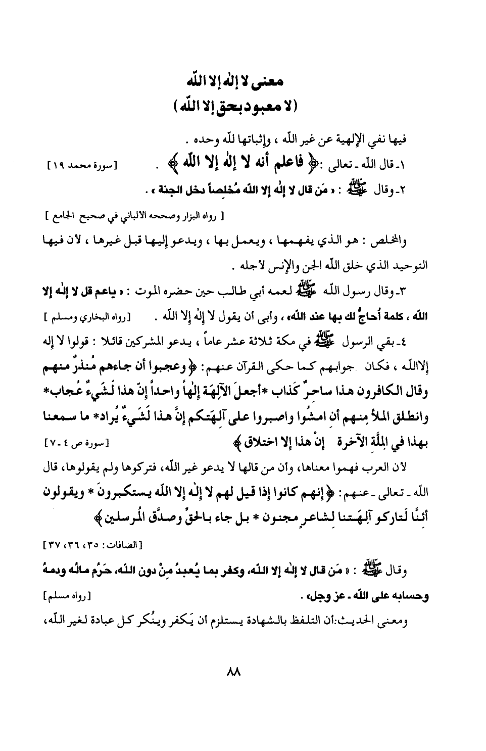 1 - قال الله - تعالى: {فَاعْلَمْ أَنَّهُ لَا إِلَهَ إِلَّا اللَّهُ} [محمد: 19]