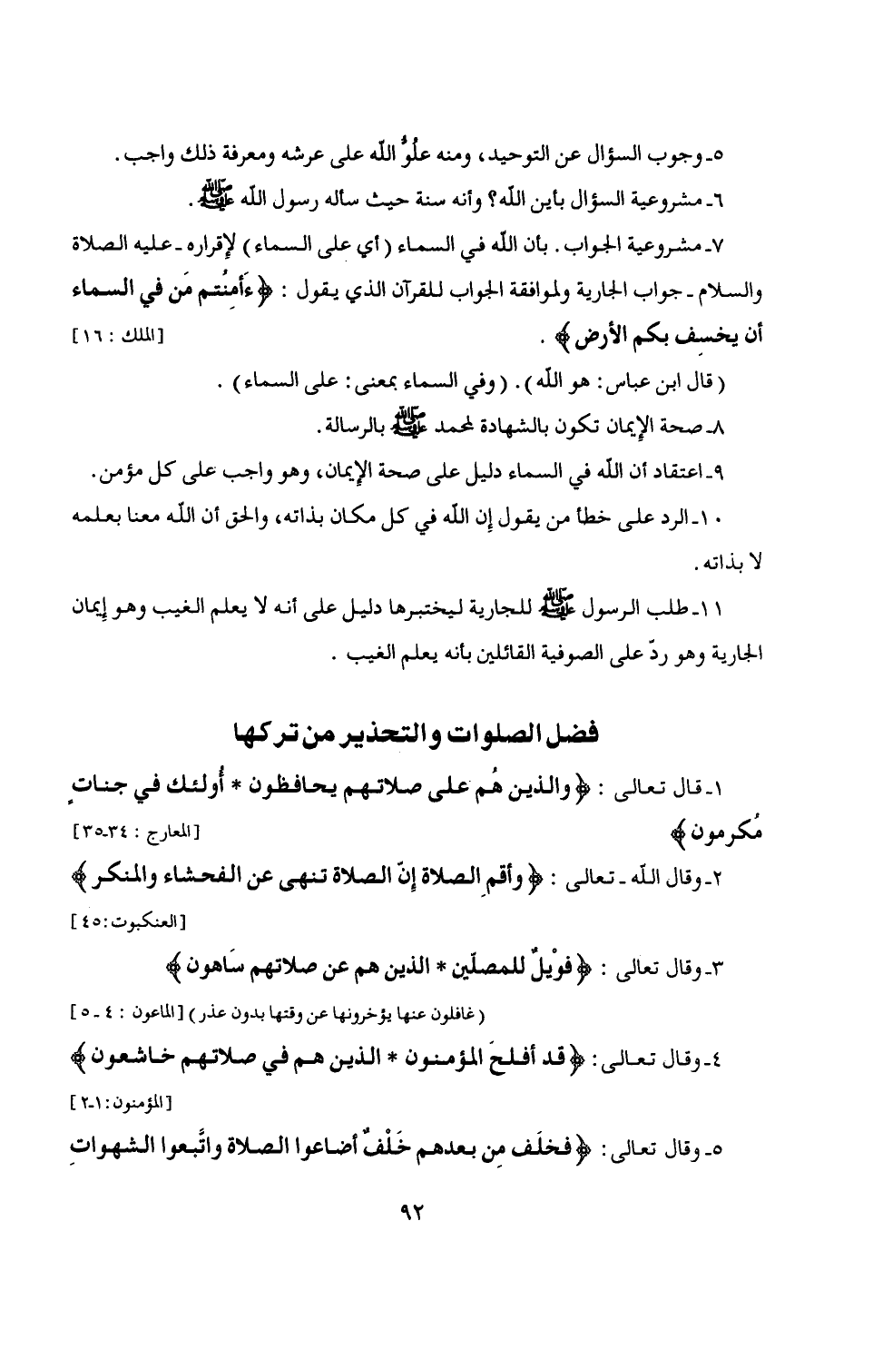 9 - اعتقاد أن الله في السماء دليل على صحة الإيمان، وهو واجب على كل مؤمن.