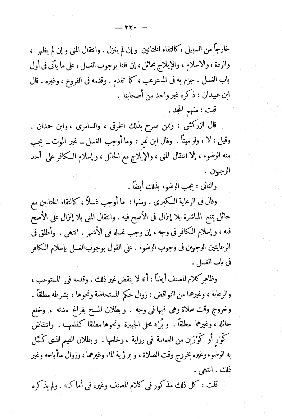 وَأَطْلَقَ فِي الرِّعَايَتَيْنِ الْوَجْهَيْنِ فِي وُجُوبِ الْوُضُوءِ عَلَى الْقَوْلِ بِوُجُوبِ الْغُسْلِ بِإِسْلَامِ الْكَافِرِ فِي بَابِ الْغُسْلِ. وَظَاهِرُ كَلَامِ الْمُصَنِّفِ أَيْضًا: أَنَّهُ لَا يُنْقِضُ غَيْرَ ذَلِكَ، وَقَدَّمَهُ فِي الْمُسْتَوْعِبِ، وَالرِّعَايَةِ، وَغَيْرِهِمَا مِنْ النَّوَاقِضِ: زَوَالُ حُكْمِ الْمُسْتَحَاضَةِ وَنَحْوُهَا.