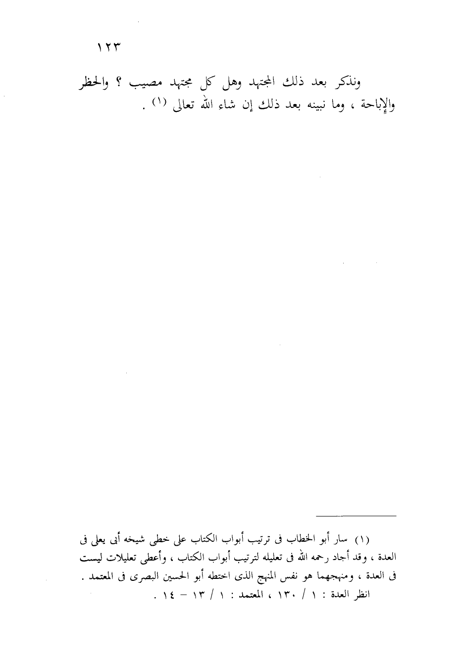 ونذكر بعد ذلك المجتهد وهل كل مجتهد مصيب؟ والحظر والإباحة، وما نبينه بعد ذلك إن شاء الله تعالى.