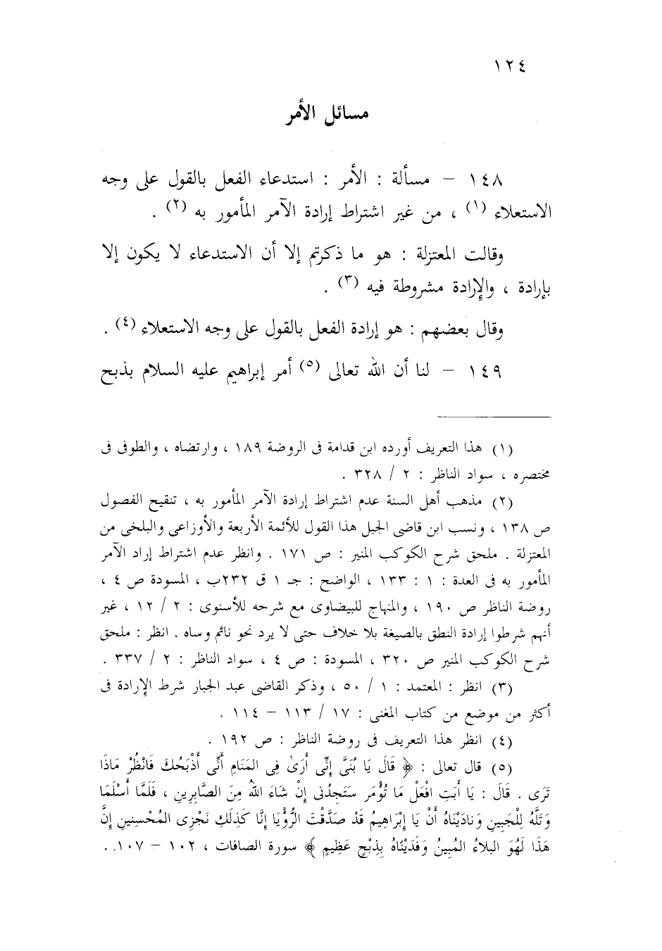 ١٤٨ - مسألة: الأمر: استدعاء الفعل بالقول على وجه الاستعلاء، من غير اشتراط إرادة الآمر المأمور به.