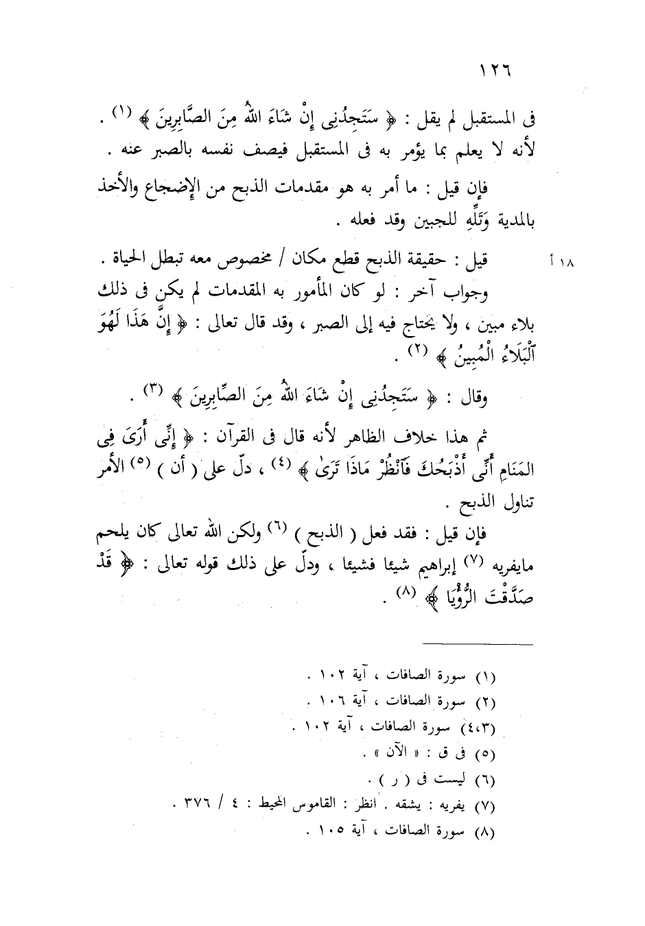 ثم هذا خلاف الظاهر لأنه قال في القرآن: {إِنِّي أَرَى فِي الْمَنَامِ أَنِّي أَذْبَحُكَ فَانْظُرْ مَاذَا تَرَى}، دل على (أن) الأمر تناول الذبح.