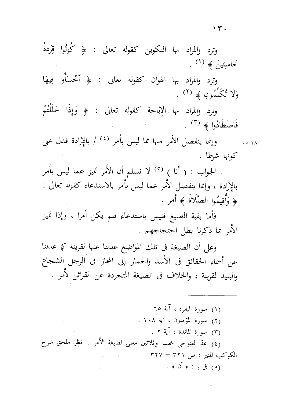 وإنما ينفصل الأمر منها مما ليس بأمر ١٨ ب/ بالإرادة فدل على كونها شرطاً.