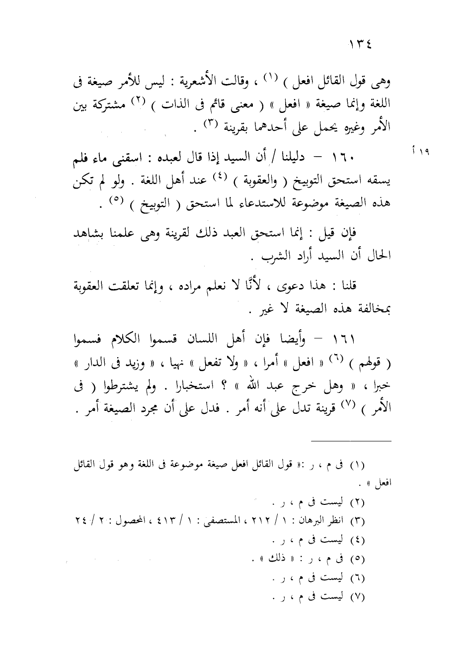 ١٦٠ - دليلنا ١٩ أ/ أن السيد إذا قال لعبده: اسقني ماء فلم يسقه استحق التوبيخ (والعقوبة) عند أهل اللغة. ولو لم تكن هذه الصيغة موضوعة للاستدعاء لما استحق (التوبيخ).