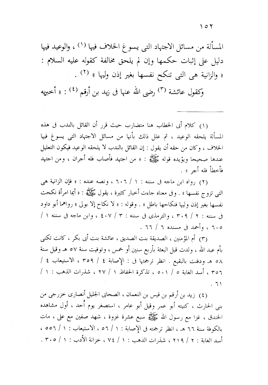 المسألة من مسائل الاجتهاد التي يسوغ الخلاف فيها، والوعيد فيها دليل على إثبات حكمها وإن لم يلحق مخالفة كقوله عليه السلام: "والزانية هي التي تنكح نفسها بغير إذن وليها".