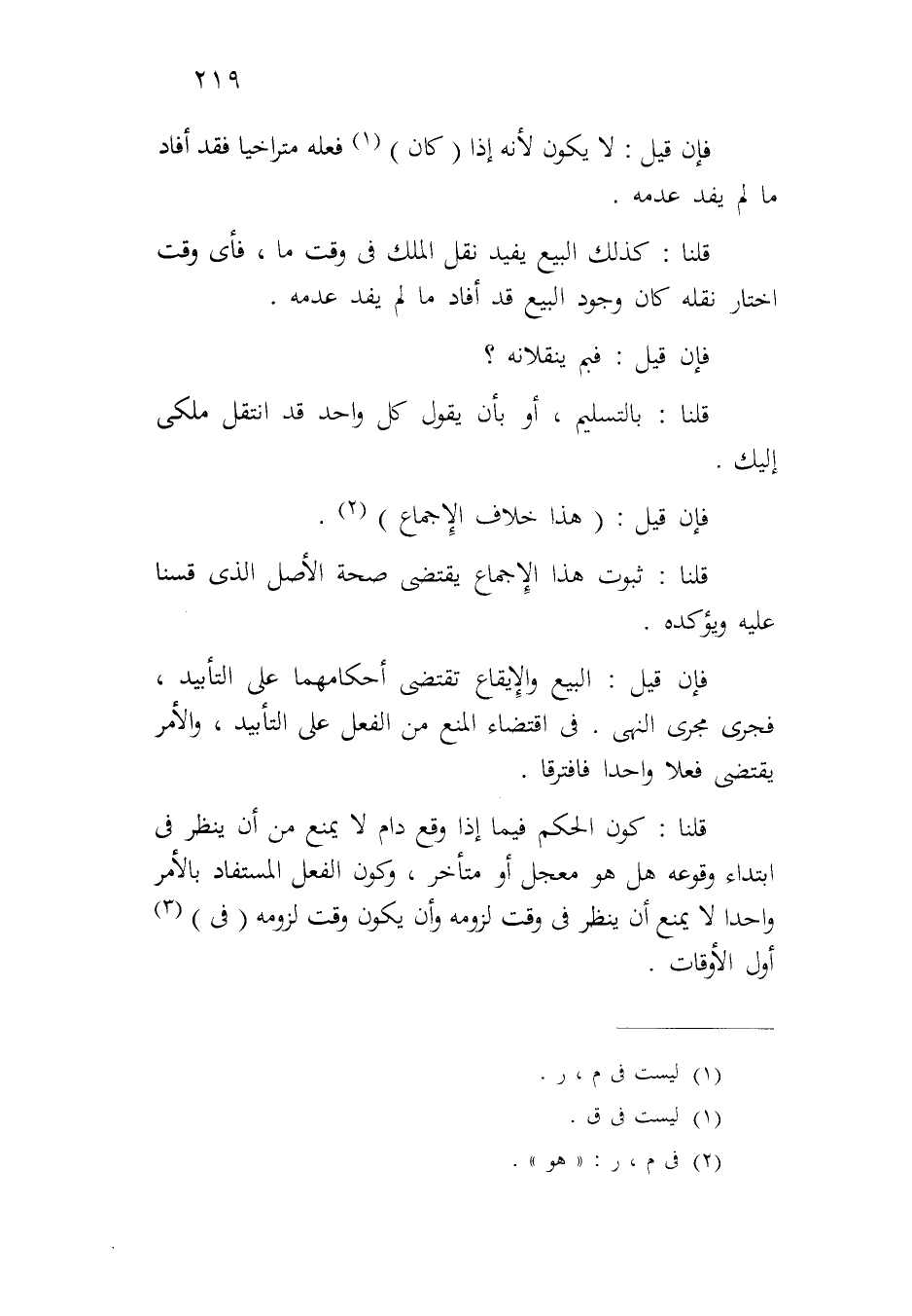 قلنا: كذلك البيع يفيد نقل الملك في وقت ما، فأي وقت اختار نقله كان وجود البيع قد أفاد ما لم يفد عدمه.