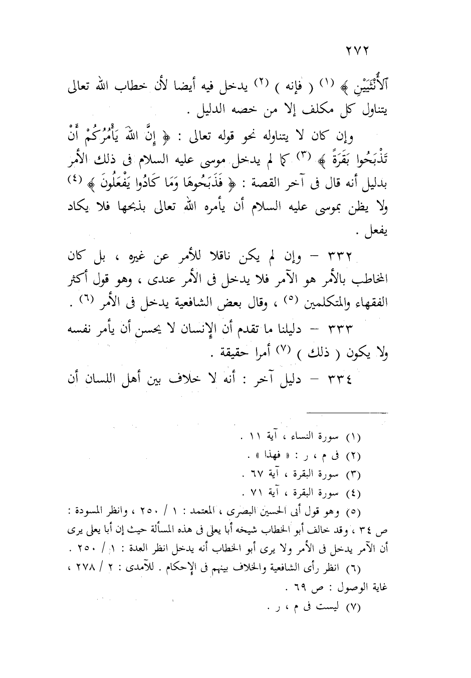 ٣٣٢ - وإن لم يكن ناقلاً للأمر عن غيره، بل كان المخاطب بالأمر هو الآمر فلا يدخل في الأمر عندي، وهو قول أكثر الفقهاء والمتكلمين، وقال بعض الشافعية يدخل في الأمر.
