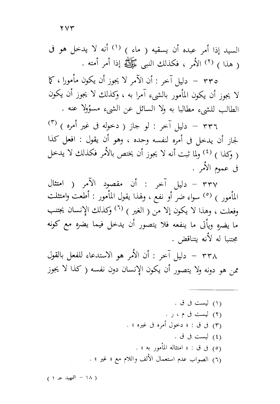 ٣٣٥ - دليل آخر: أن الآمر لا يجوز أن يكون مأموراً، كما لا يجوز أن يكون المأمور بالشيء آمراً به، وكذلك لا يجوز أن يكون الطالب للشيء مطالباً به ولا السائل عن الشيء مسؤولاً عنه.