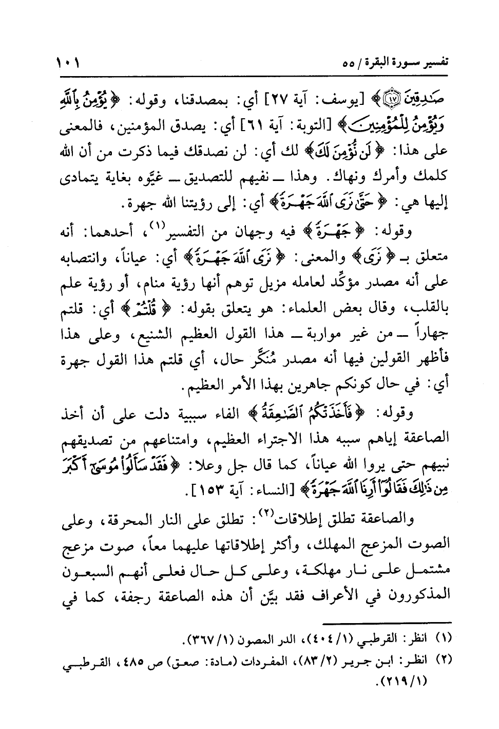 (¬2) انظر: ابن جرير (2/ 83)، المفردات (مادة: صعق) ص485، القرطبي (1/ 219).