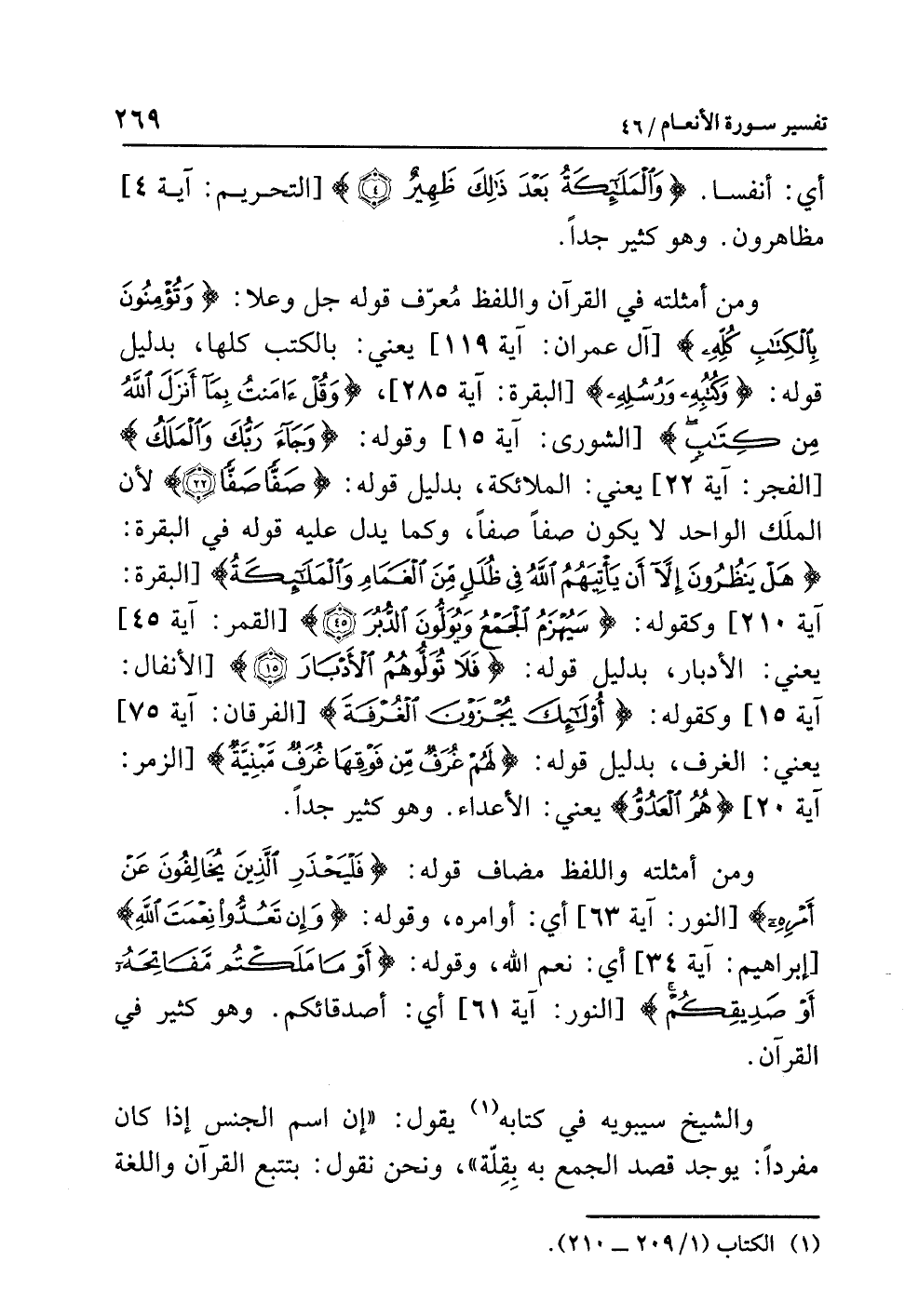 والشيخُ سيبويه في كتابِه (¬1) يقولُ: «إِنَّ اسمَ الجنسِ إذا كان مُفْرَدًا: يُوجَدُ قَصْدُ الجمعِ به بِقِلَّةٍ»، ونحن نقولُ: بتتبعِ القرآنِ واللغةِ