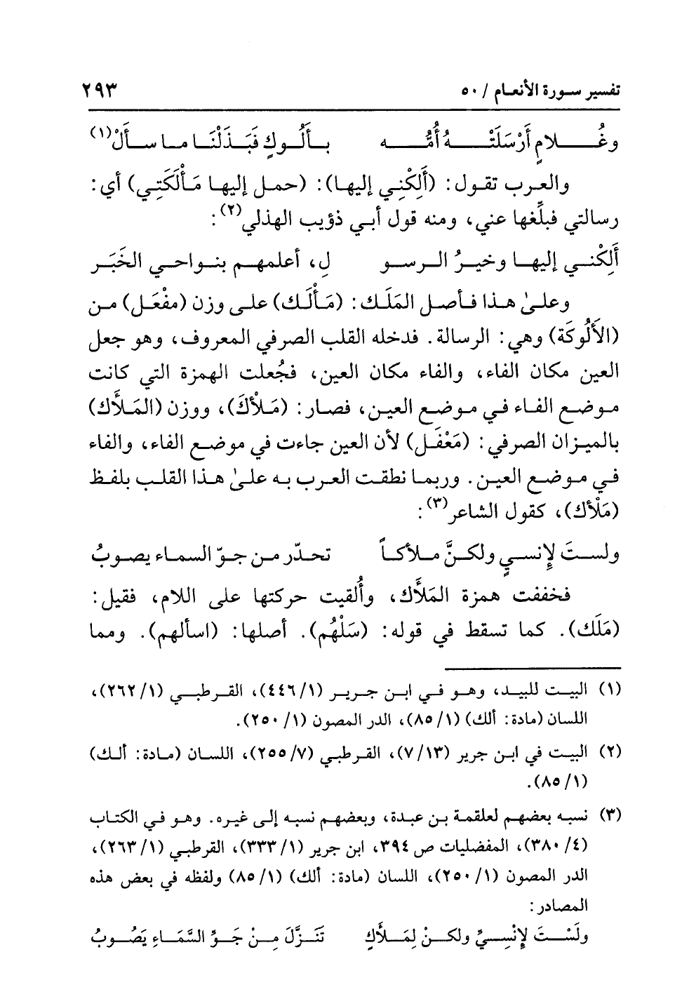 (¬3) نسبه بعضهم لعلقمة بن عبدة، وبعضهم نسبه إلى غيره. وهو في الكتاب (4/ 380)، المفضليات ص 394، ابن جرير (1/ 333)، القرطبي (1/ 263)، الدر المصون (1/ 250)، اللسان (مادة: ألك) (1/ 85) ولفظه في بعض هذه المصادر: