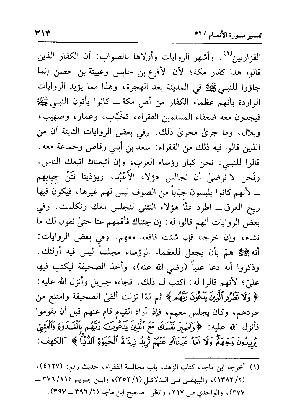 (¬1) أخرجه ابن ماجه، كتاب الزهد، باب مجالسة الفقراء، حديث رقم (4127)، (2/ 1382)، والبيهقي في الدلائل (1/ 352)، وابن جرير (11/ 376 - 377)، والواحدي ص 217، وانظر: صحيح ابن ماجه (2/ 396 - 397).