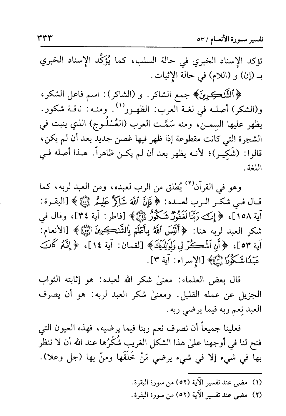 وهو في القرآنِ (¬2) يُطْلَقُ من الربِّ لعبدِه، ومن العبدِ لِرَبِّهِ، كما قال في شكرِ الربِّ لعبدِه: {فَإِنَّ اللَّهَ شَاكِرٌ عَلِيمٌ} [البقرة: آية 158] {إِنَّ رَبَّنَا لَغَفُورٌ شَكُورٌ} [فاطر: آية 34] وقال في شُكْرِ العبدِ لِرَبِّهِ هنا: {أَلَيْسَ اللَّهُ بِأَعْلَمَ بِالشَّاكِرِينَ} [الأنعام: آية 53] {أَنِ اشْكُرْ لِي وَلِوَالِدَيْكَ} [لقمان: آية 14] {إِنَّهُ كَانَ عَبْدًا شَكُورًا} [الإسراء: آية 3].