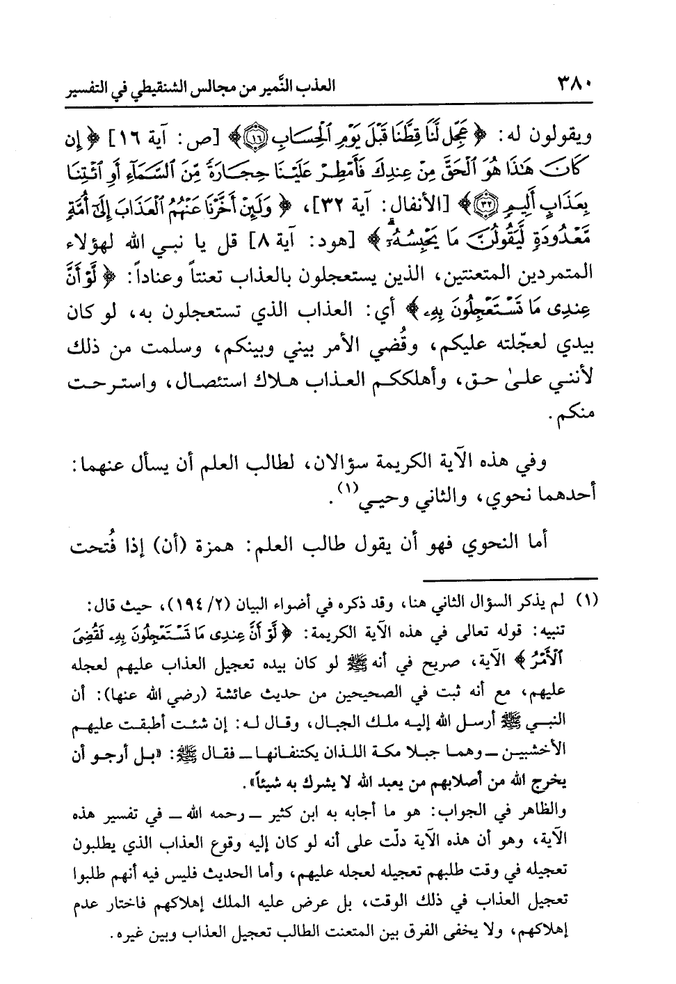 (¬1) لم يذكر السؤال الثاني هنا، وقد ذكره في أضواء البيان (2/ 194) حيث قال: