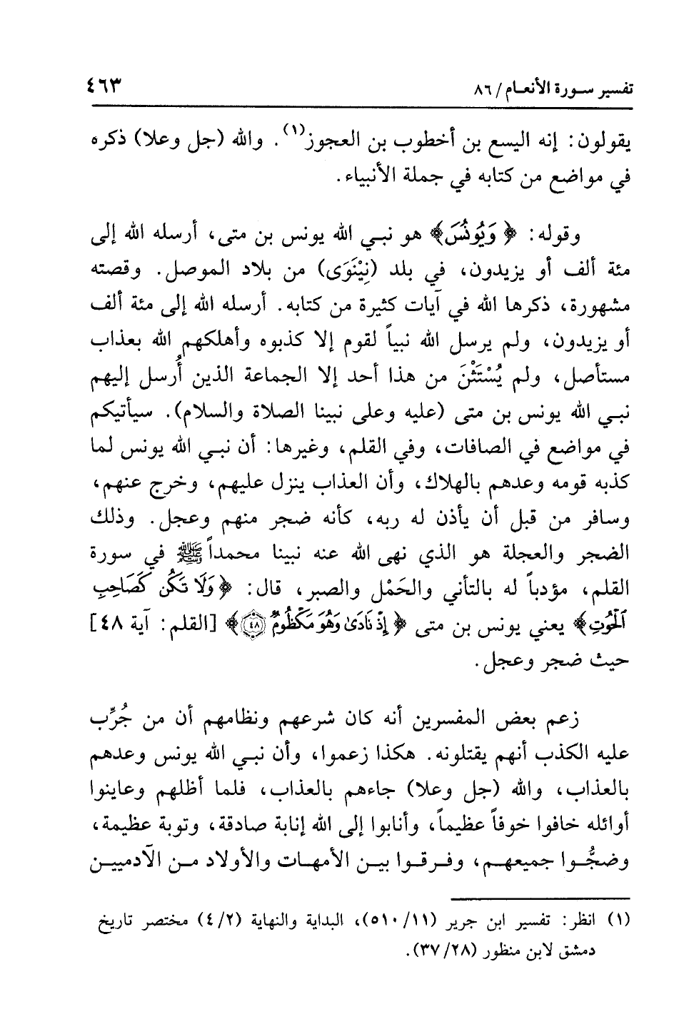 (¬1) انظر: تفسير ابن جرير (11/ 510)، البداية والنهاية (2/ 4) مختصر تاريخ دمشق لابن منظور (28/ 37).