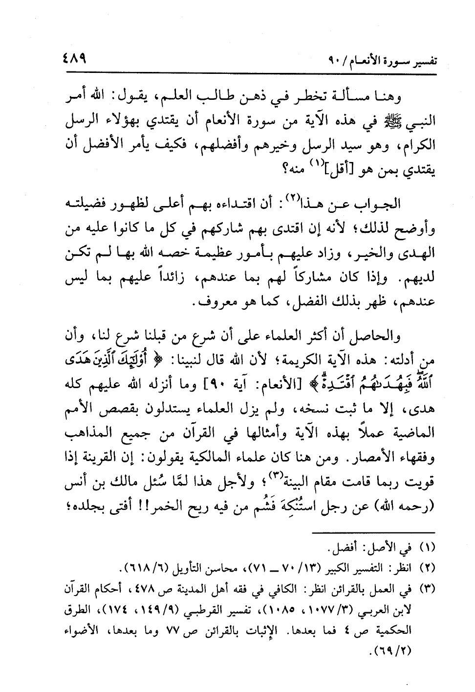(¬3) في العمل بالقرائن انظر: الكافي في فقه أهل المدينة 478، أحكام القرآن لابن العربي (3/ 1077، 1085)، تفسير القرطبي (9/ 149، 174)، الطرق الحكمية ص4 فما بعدها. الإثبات بالقرائن 77 وما بعدها، الأضواء (2/ 69).