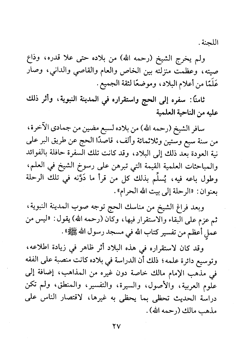ثامنًا: سفره إلى الحج واستقراره في المدينة النبوية، وأثر ذلك عليه من الناحية العلمية