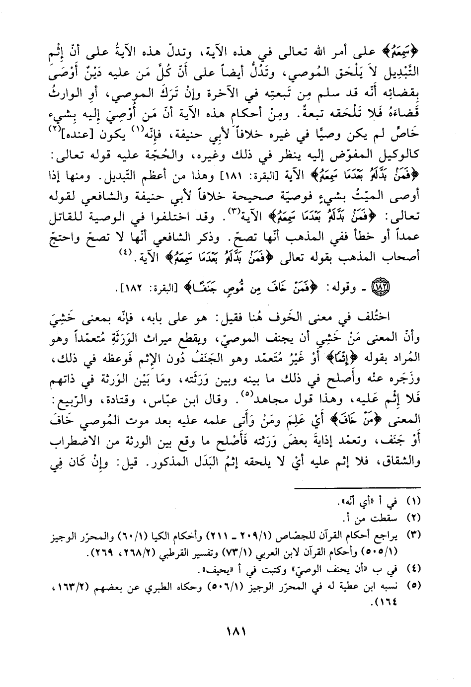 (182) - وقوله: {فمن خاف من موص جنفًا} [البقرة: 182].