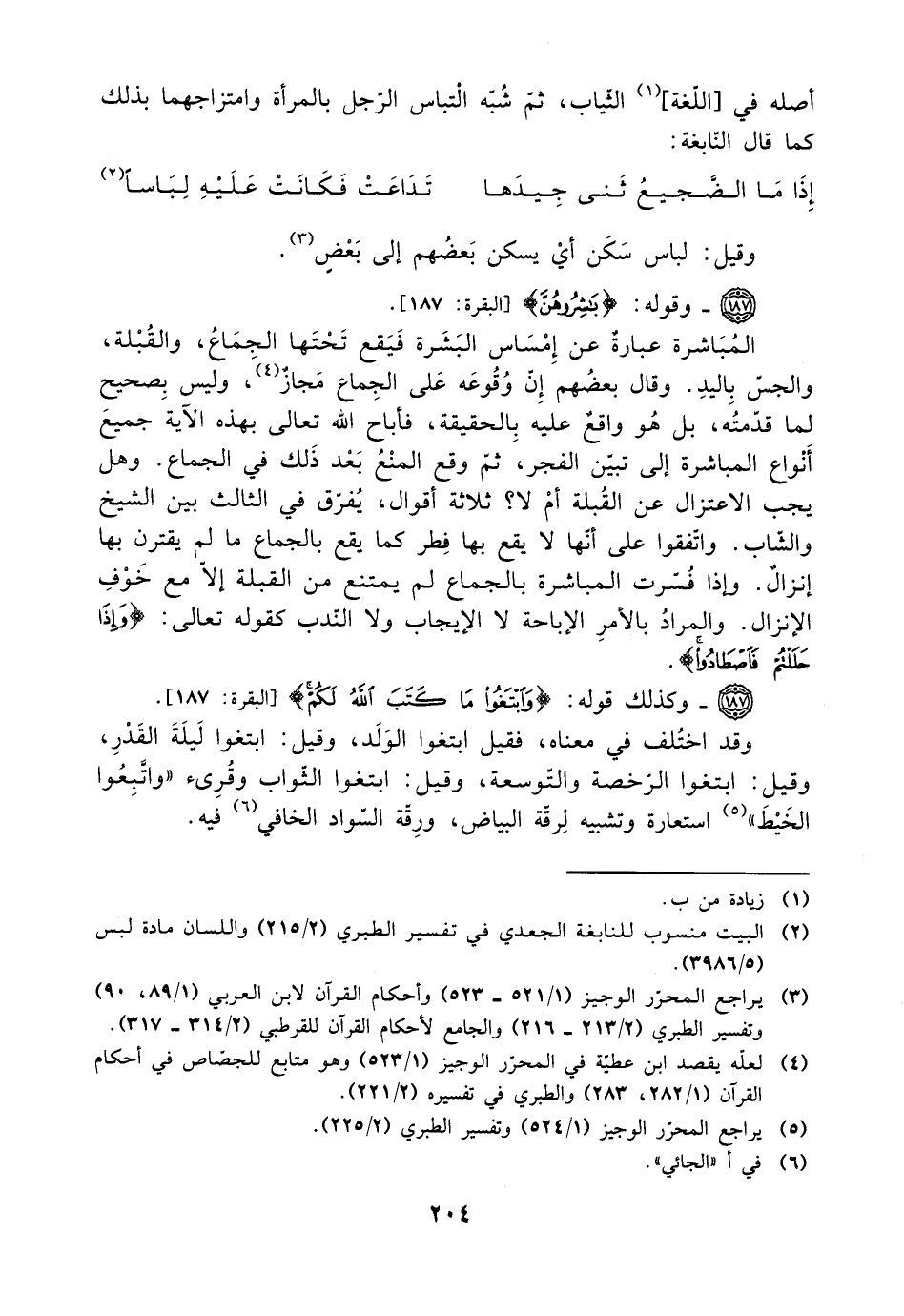 (187) - وقوله: {وباشروهن} [البقرة: 187].