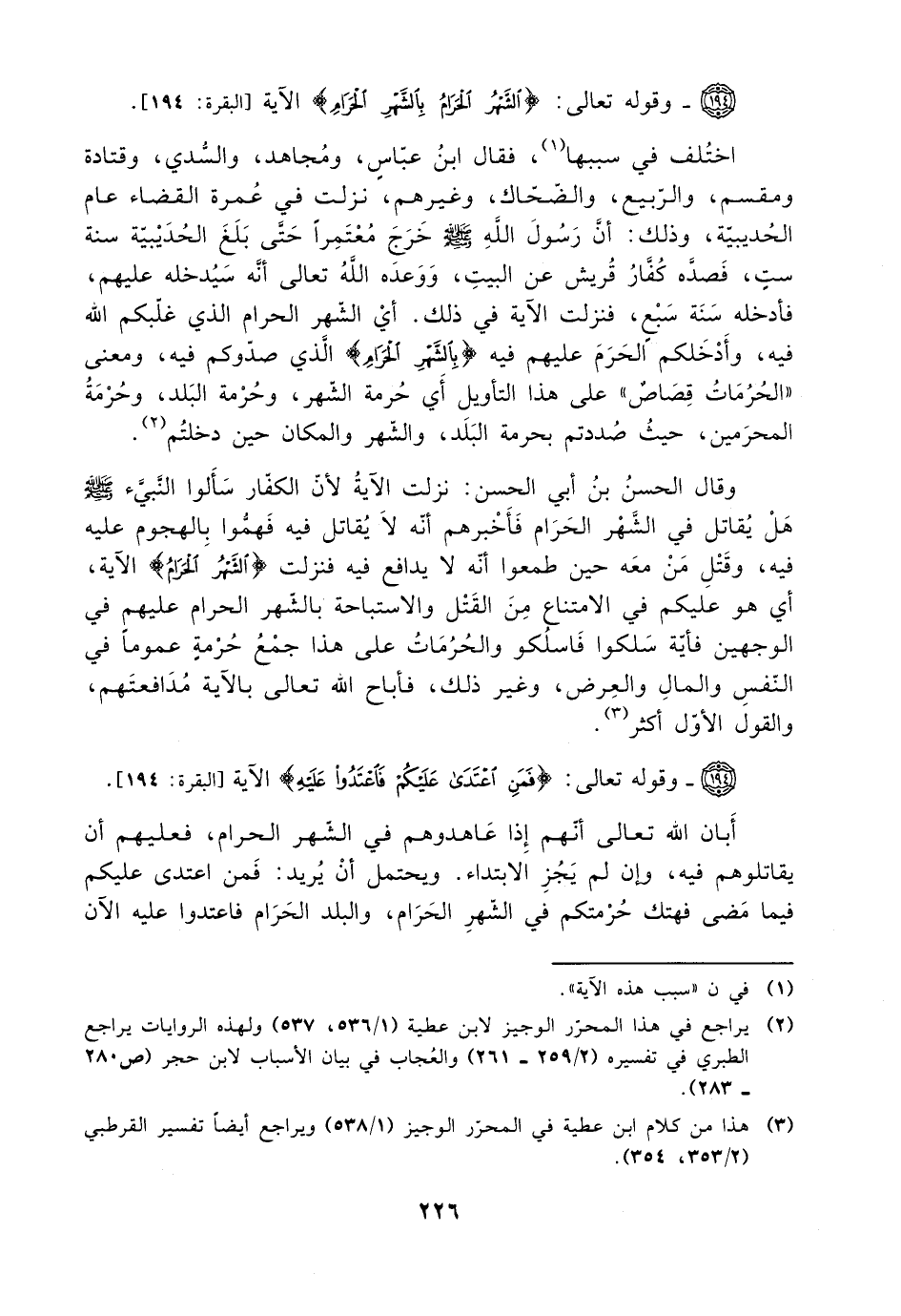 (194) - وقوله تعالى: {الشهر الحرام بالشهر الحرام} [البقرة: 194].
