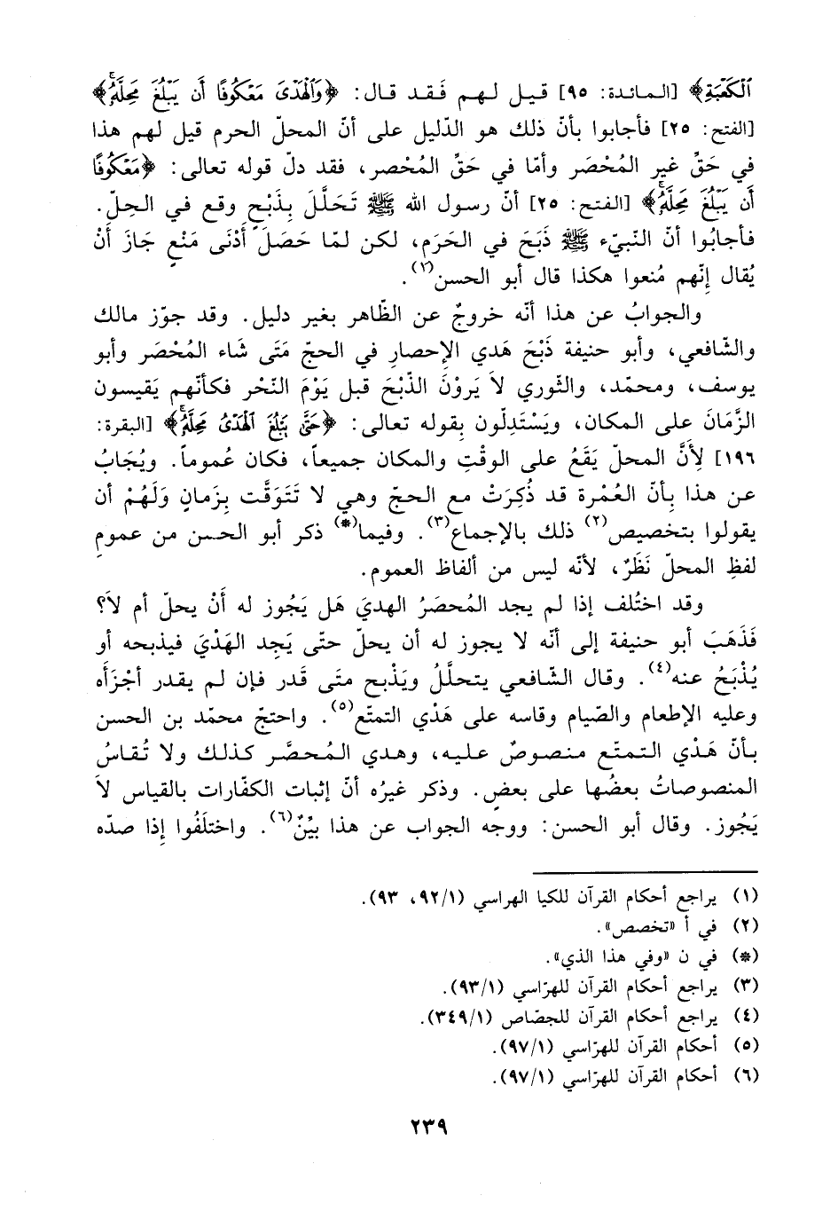 فأجابوا أن النبي صلى الله عليه وسلم وذبح في الحرم، لكن لما حصل أدنى منع جاز أن يقال إنهم منعوا هكذا قال أبو الحسن.