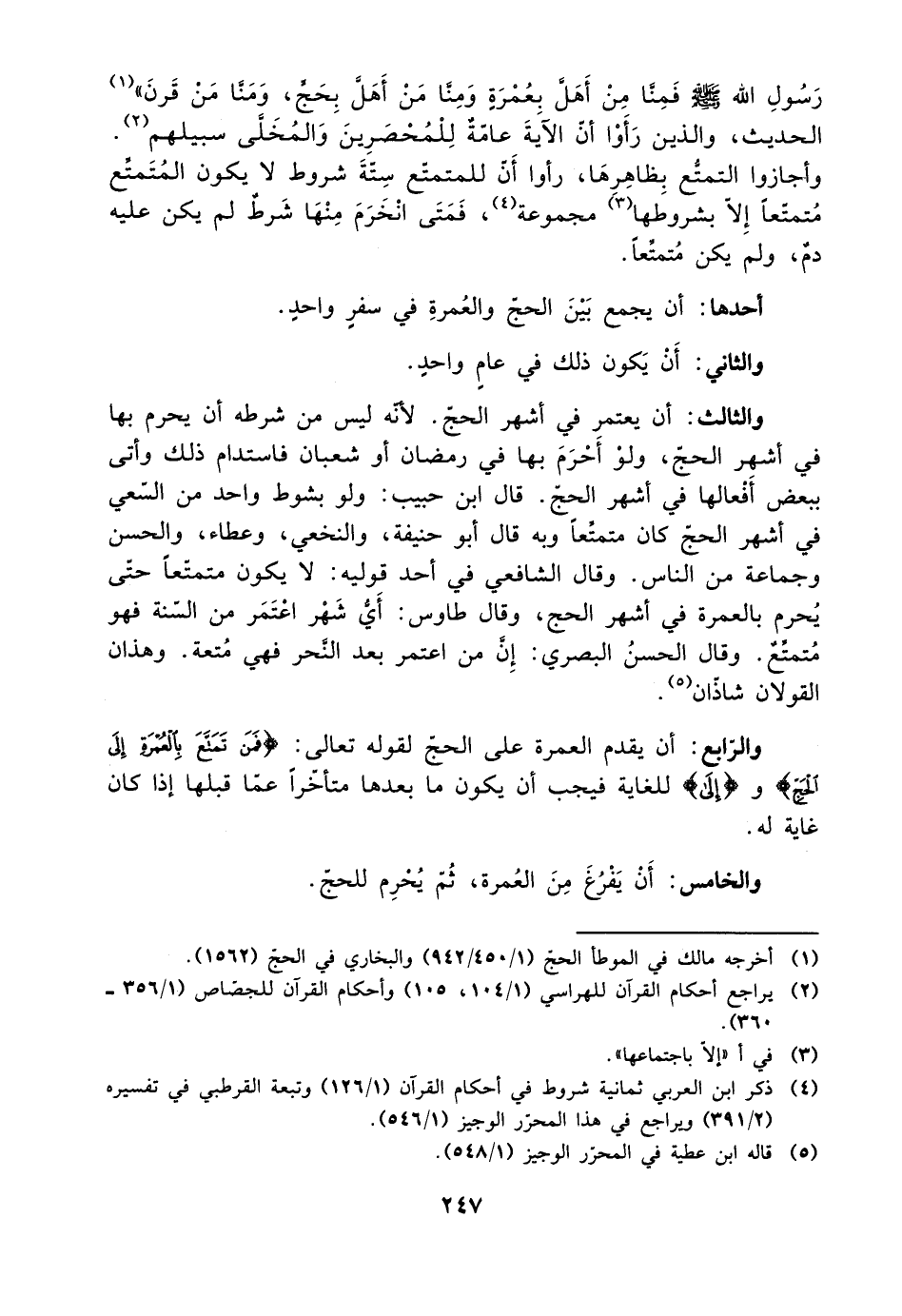 والرابع: أن يقدم العمرة على الحج لقوله تعالى: {فمن تمتع بالعمرة إلى الحج} و {إلى} للغاية فيجب أن يكون ما بعدها متأخرًا عما قبلها إذا كان غاية له.