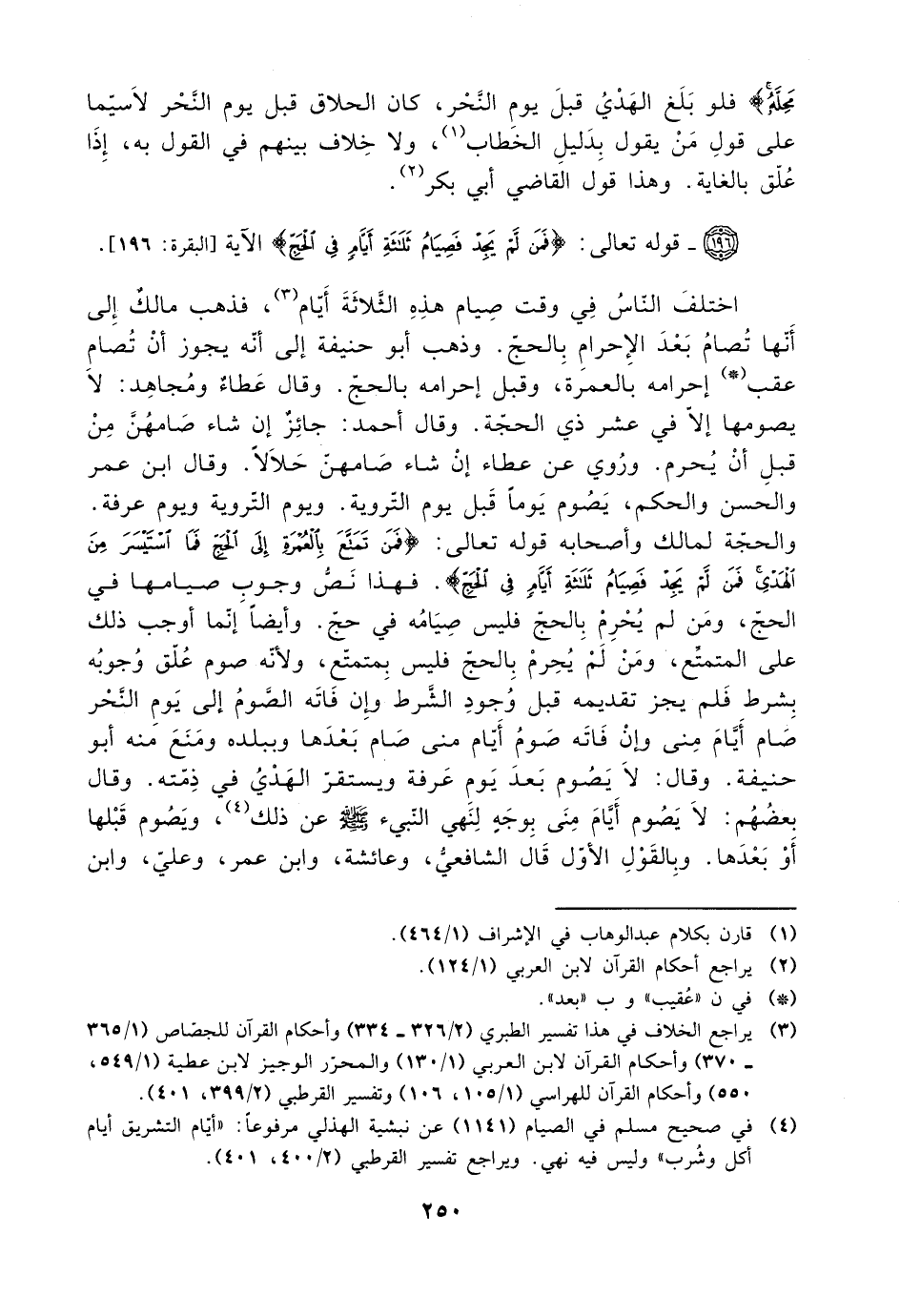 (196) - قوله تعالى: {فمن لم يجد فصيام ثلاثة أيام في الحج} [البقرة: 196].