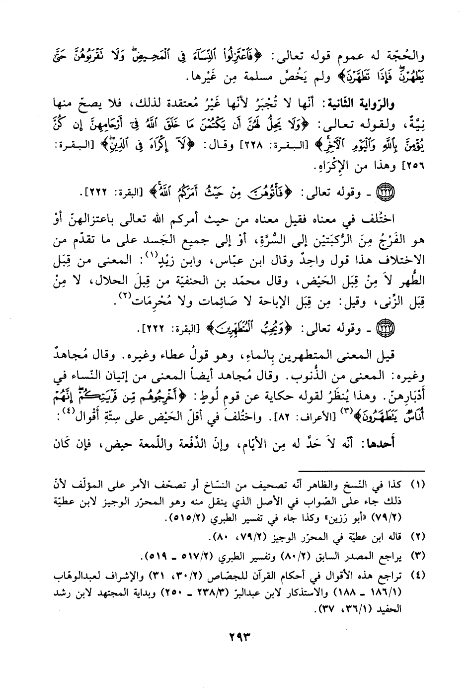 والجحة له عموم قوله تعالى: {فاعتزلوا النساء في المحيض ولا تقربوهن حتى يطهرن فإن تطهرن} ولم يخص مسلمة من غيرها.