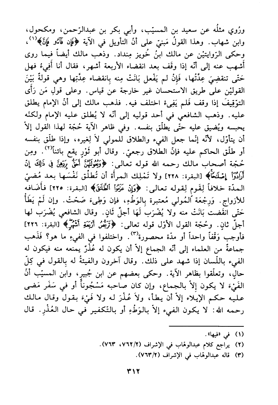 وروي مثله عن سعيد بن المسيب، وأبي بكر بن عبد الرحمن، ومكحول، وابن شهاب. وهذا القول مبني على أن التأويل في الآية {فإن فاؤوا فإن}، وحكى الروايتين عن مالك ابن خويز منداد. وذهب مالك أيضًا فيما روى أشهب عنه إلى أنه إذا وقف بعد انقضاء الأربعة أشهر، فقال أنا أفيء فهل حتى تنقضي عدتها، فإن لم يفعل بانت منه لانقضاء عدتها وهو قولة بين القولين على طريق الاستحسان غير خارجة عن قياس. وعلى قول من رأى التوقيف إذا وقف فلم يفئ اختلف فيه. فذهب مالك إلى أن الإمام يطلق عليه. وذهب الشافعي في أحد قوليه إلى أنه لا يطلق عليه الإمام ولكنه يحبسه ويضيق عليه حتى يطلق بنفسه. وفي ظاهر الآية حجة لهذا القول إلا أن يتأول، لأنه إنما جعل الفيء والطلاق للمولي لا لغيره، وإذا طلق بنفسه أو طلق الحاكم عليه فإن الطلاق رجعي. وقال أبو ثور يقع بائنًا. ومن حجة أصحاب مالك رحمه الله قوله تعالى: {وبعولتهن أحق بردهن في ذلك إن أرادوا إصلاحًا} [البقرة: 228] ولا تملك المرأة أن تطلق نفسها بعد مضي المدة خلافًا لقوله تعالى: {فإن عزموا الطلاق} [البقرة: 225] فأضافه للأزواج. ورجعة المولي معتبرة بالوطء، فإن وطئ صحت. وإن لم يطأ حتى انقضت بانت منه ولا يضرب لها أجل ثان. وقال الشافعي يضرب لها أجل ثان. وحجة القول الأول قوله تعالى: {تربص أربعة أشهر} [البقرة: 226] فأوجب وقفًا واحدًا أو مدة محصورة. واختلفوا في الفيء ما هو؟ فذهب جماعة من العلماء إلى أنه الجماع إلا أن يكون له عذر يمنعه منه فيكون الفيء باللسان إذا شهد على ذلك. وقال آخرون والفيئة له بالقول في كل حال، وتعلقوا بظاهر الآية. وحكى بعضهم عن ابن جبير، وابن المسيب أن الفيء لا يكون إلا بالجماع، وإن كان صاحبه مسجونًا أو في سفر مضى عليه حكم الإيلاء إلا إن يطأ، ولا عذر له ولا فيء بقول وقال مالك رحمه الله: لا يكون الفيء إلا بالوطء أو بالتكفير في حال العذر. قال