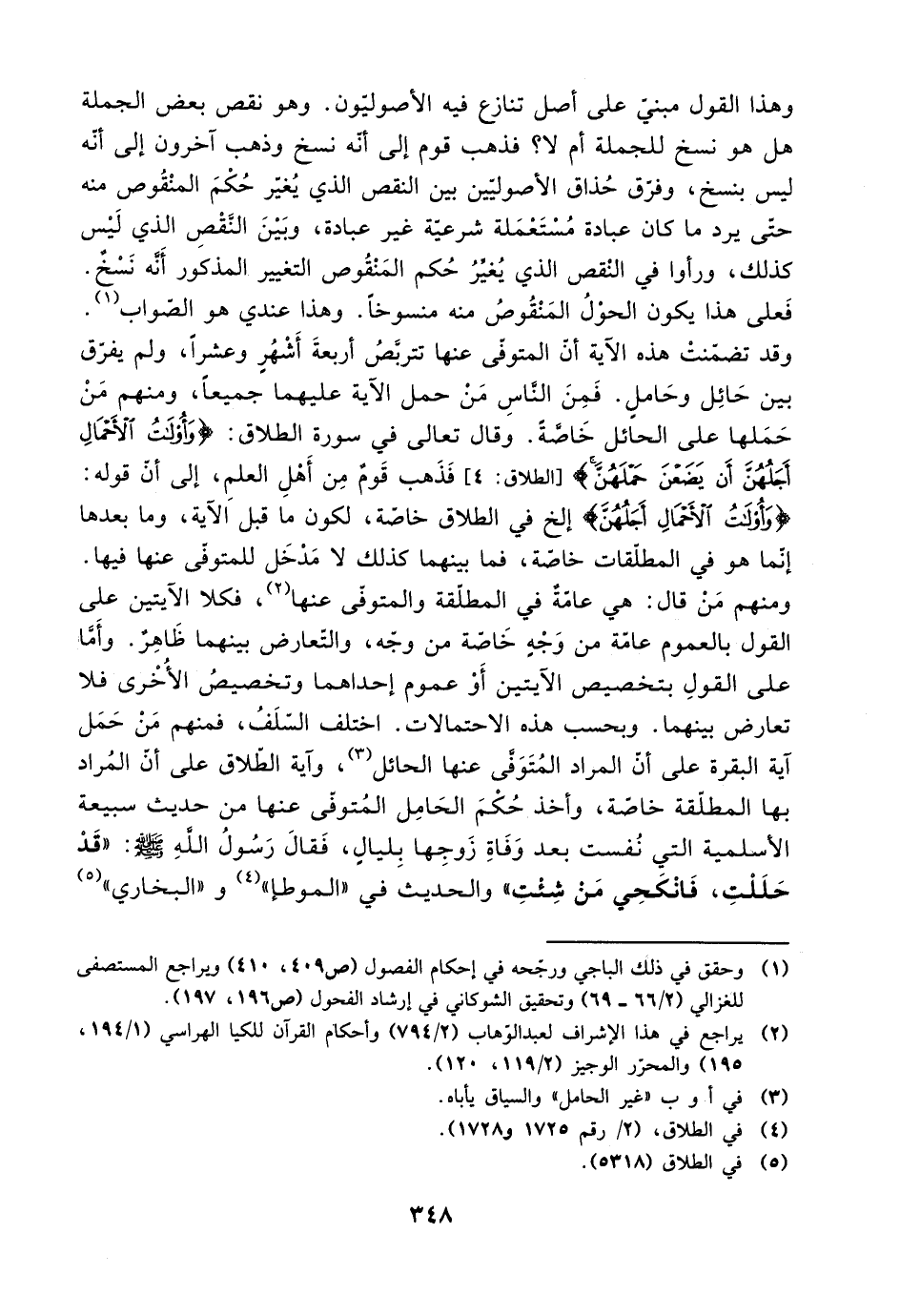ومنهم من قال: هي عامة في لمطلقة والمتوفى عناه، فكلا الآيتين على القول بتخصيص الآيتين أو عموم إحداهما وتخصيص الأخرى فلا تعارض بينهما. وبحسب هذه الاحتمالات. اختلف السلف، فمنهم من حمل آية البقرة على أن المراد المتوفى عنها الحائل، وآية الطلاق على أن المراد بها المطلقة خاصة، وأخذ حكم الحامل المتوفى عنها من حديث سبيعة الأسلمية التي نفست بعد وفاة زوجها بليال، فقال رسول الله صلى الله عليه وسلم: ((قد حللت، فانكحي من شئت)) والحديث في ((الموطأ)) و ((البخاري))
