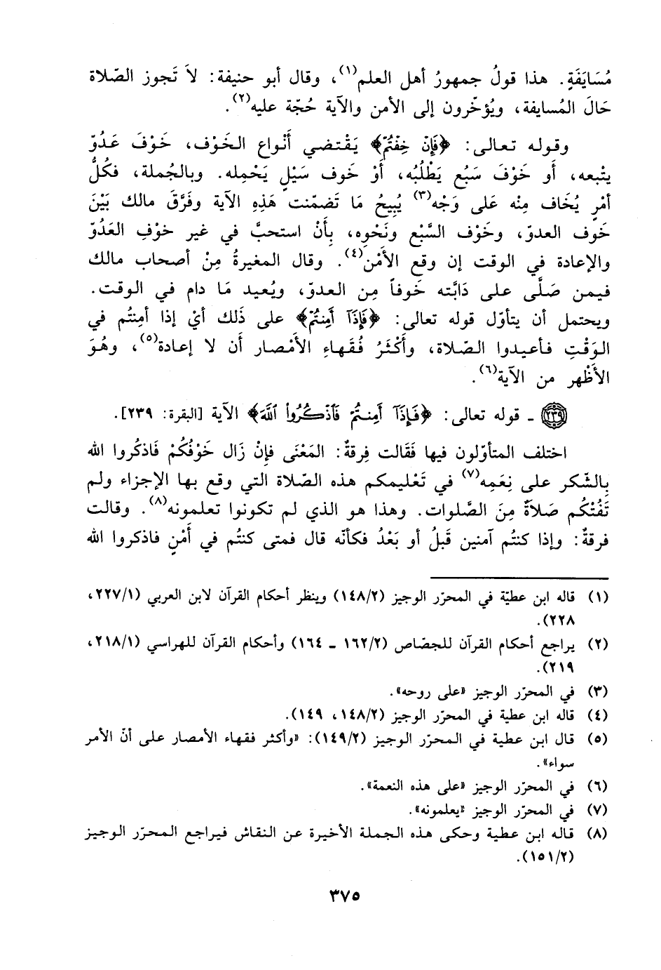 ويحتمل أن يتأول قوله تعالى: {فإذا أمنتم} على ذلك أي إذا أمنتم في الوقت فأعيدوا الصلاة، وأكثر فقهاء الأمصار أن لا إعادة، وهو الأظهر من الآية.