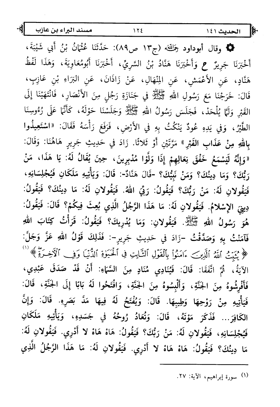 1064 - قال أبو داود رحمه الله (ج 4 ص 354): حدثنا أحمد بن حنبل أخبرنا عبد الله بن يزيد حدثنا حيوة أخبرني أبو هانئ حميد بن هانئ أن أبا علي عمرو بن مالك حدثه أنه سمع فضالة بن عبيد صاحب رسول الله صلى الله عليه وعلى آله وسلم يقول: سمع رسول الله صلى الله عليه وعلى آله وسلم رجلًا يدعو في صلاته لم يمجد الله تعالى ولم يصل على النبي صلى الله عليه وعلى آله وسلم فقال رسول الله صلى الله عليه وعلى آله وسلم «عجل هذا» ثم دعاه فقال له أو لغيره «إذا صلى أحدكم فليبدأ بتمجيد ربه والثناء عليه ثم يصلي على النبي صلى الله عليه وعلى آله وسلم ثم يدعو بعد بما شاء».