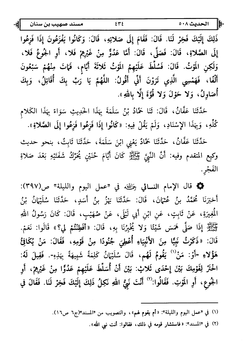 1476 - قال الإمام أحمد رحمه الله (ج 5 ص 58): حدثنا محمد بن جعفر حدثنا شعبة قال سمعت إسحاق بن سويد قال سمعت مطرف بن عبد الله بن الشخير يحدث عن رجل من أصحاب النبي صلى الله عليه وعلى آله وسلم قال: كان بالكوفة أمير قال فخطب يومًا فقال إن في إعطاء هذا المال فتنة وفي إمساكه فتنة وبذلك قام به رسول الله صلى الله عليه وعلى آله وسلم في خطبته حتى فرغ ثم نزل.