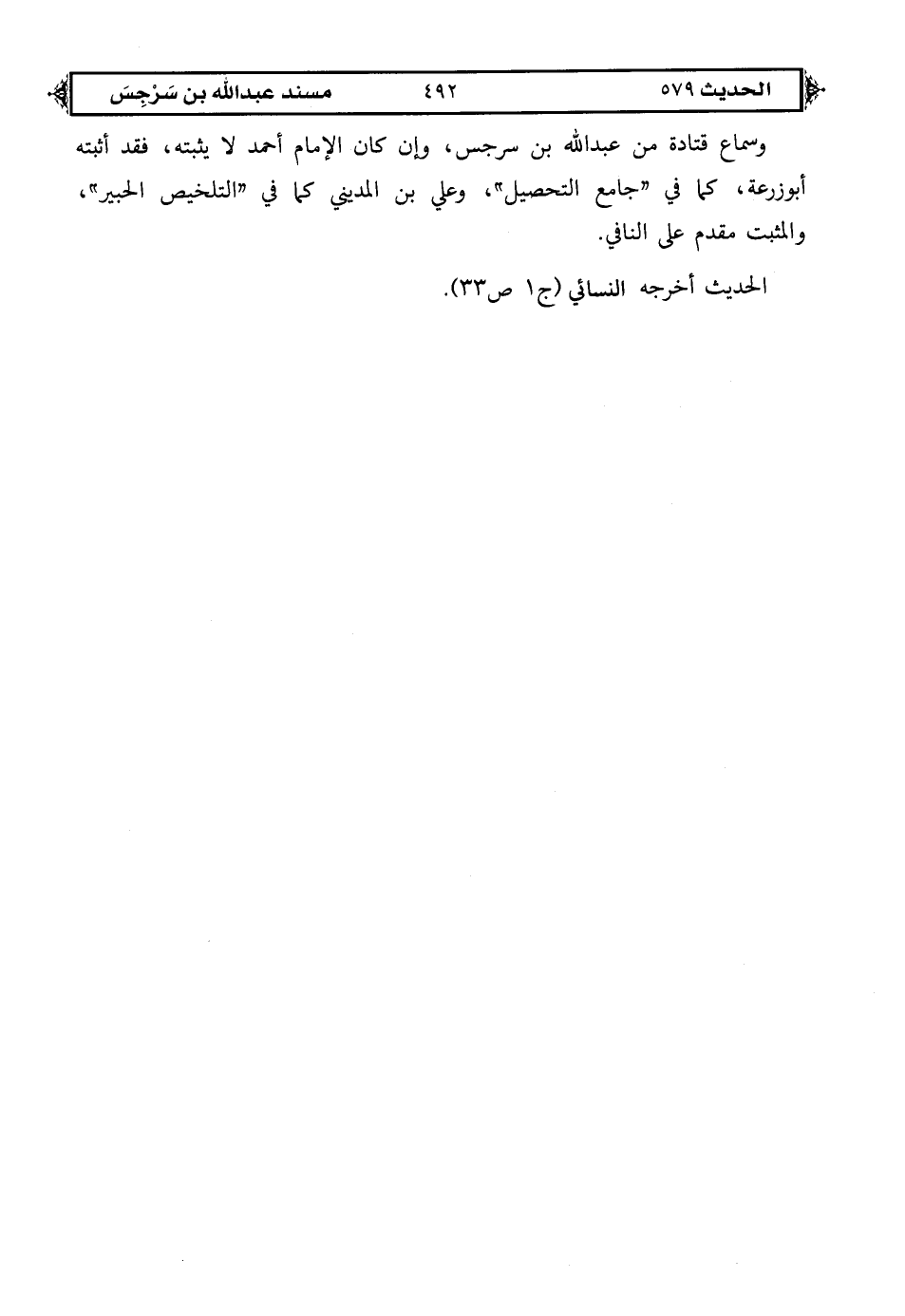 [ص: 493] ثم الراوي له هنا شعبة، وهو لا يقبل من أبي إسحاق إلا ما كان مسموعًا له، والله أعلم.