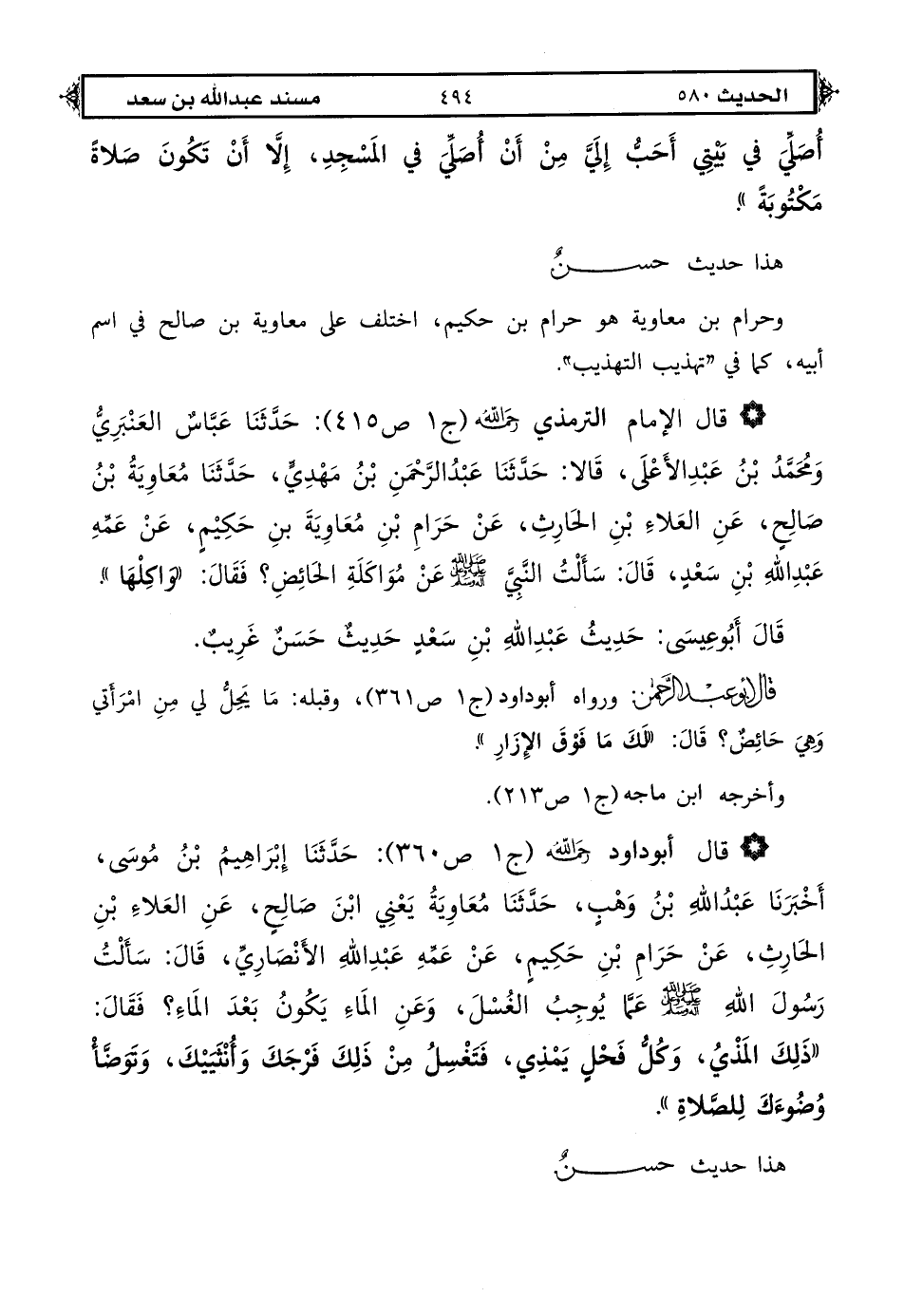 الحديث أخرجه الترمذي (ج 5 ص 574) فقال: حدثنا عبدة بن عبد الله الخُزَاعِيُّ، حدثنا معاوية بن هشام، عن سفيان، عن هشام بن عروة ... به.