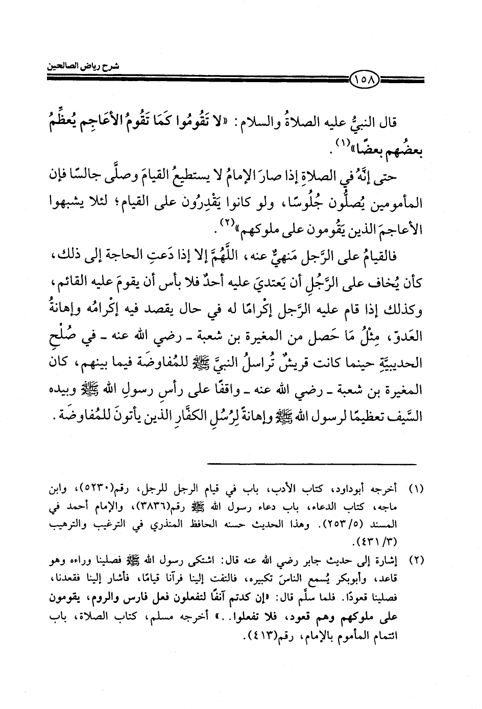 قال النبي عليه الصلاة والسلام: ((لا تقوموا كما تقوم الأعاجم يعظم بعضهم بعضا)) .