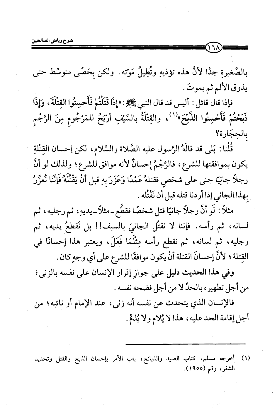 قلنا: بلي قد قاله الرسول عليه الصلاة والسلام، لكن إحسان القتلة يكون بموافقتها للشرع، فالرجم إحسان لأنه موافق للشرع، ولذلك لو أن رجلاً جانيا جنى على شخص فقتله عمداً وعزر به قبل ان يقتله فإننا نعزر بهذا الجاني إذا أردنا قتله قبل أن نقتله.